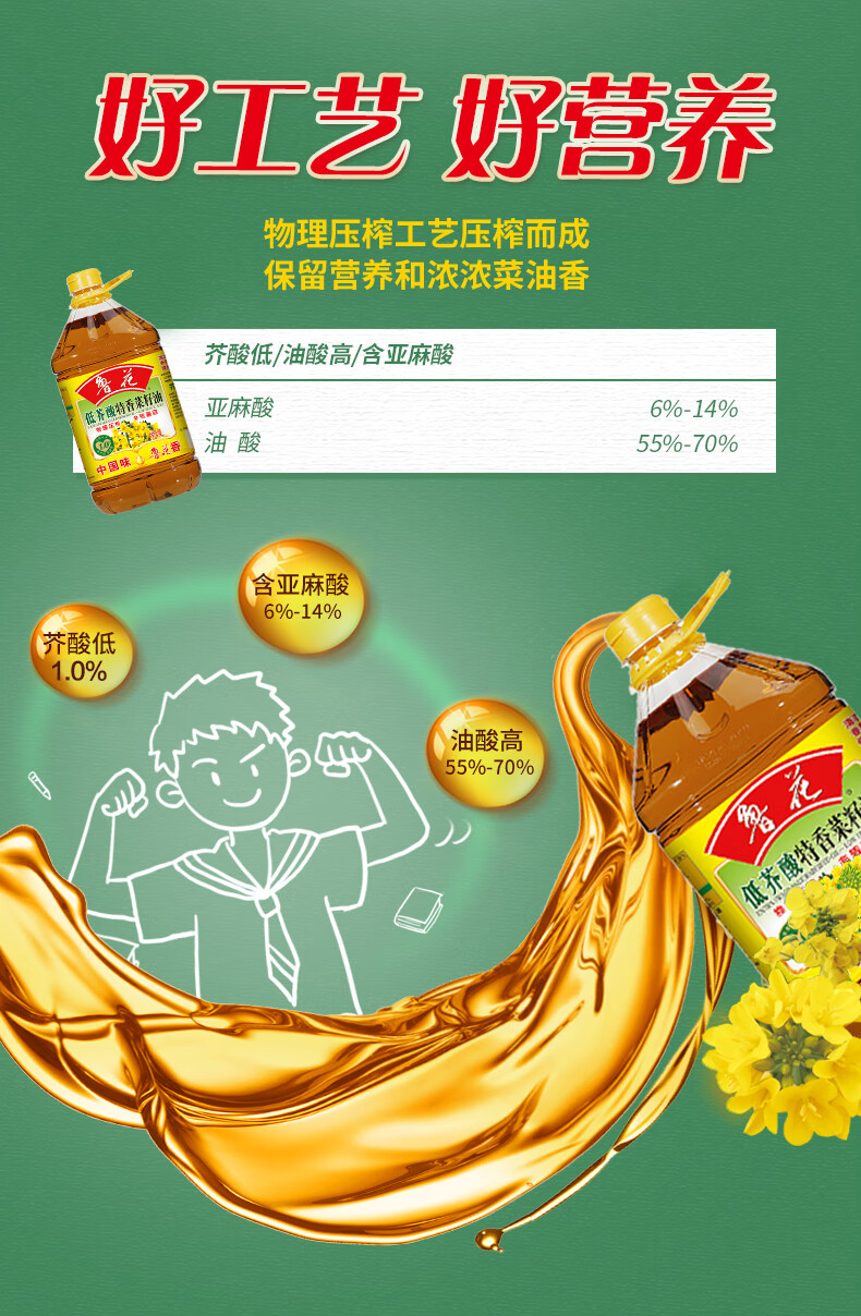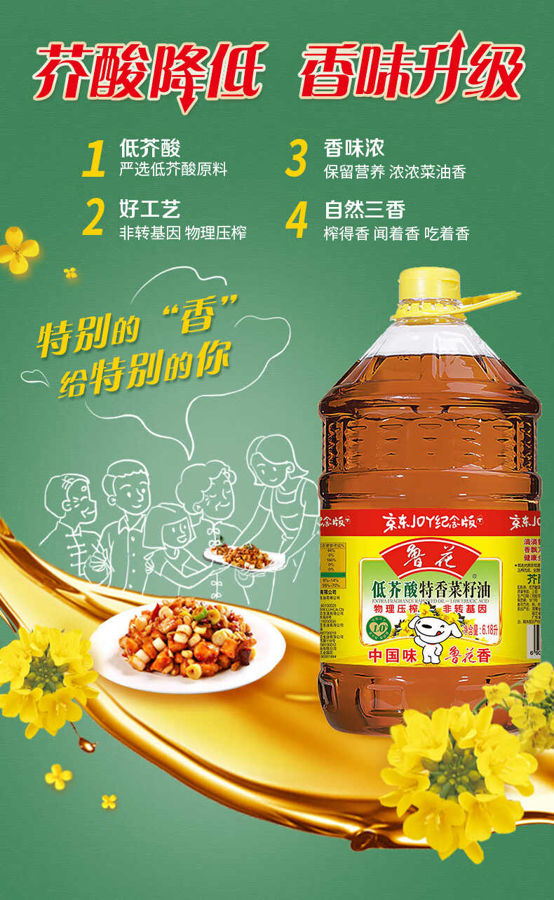 商品名称:鲁花 【保真菜籽油】食用油 低芥酸特香菜籽油 6.18L 物理压榨