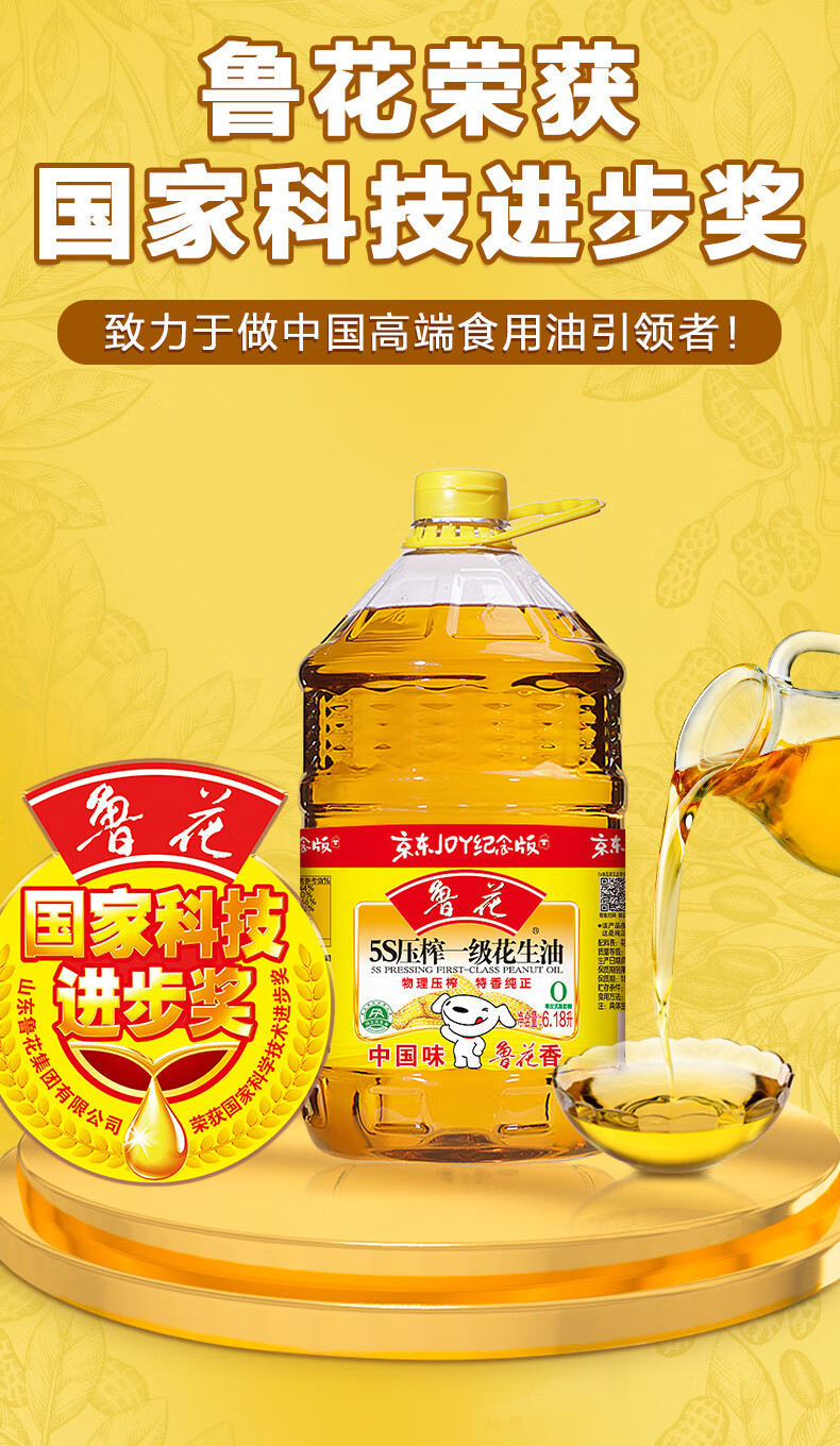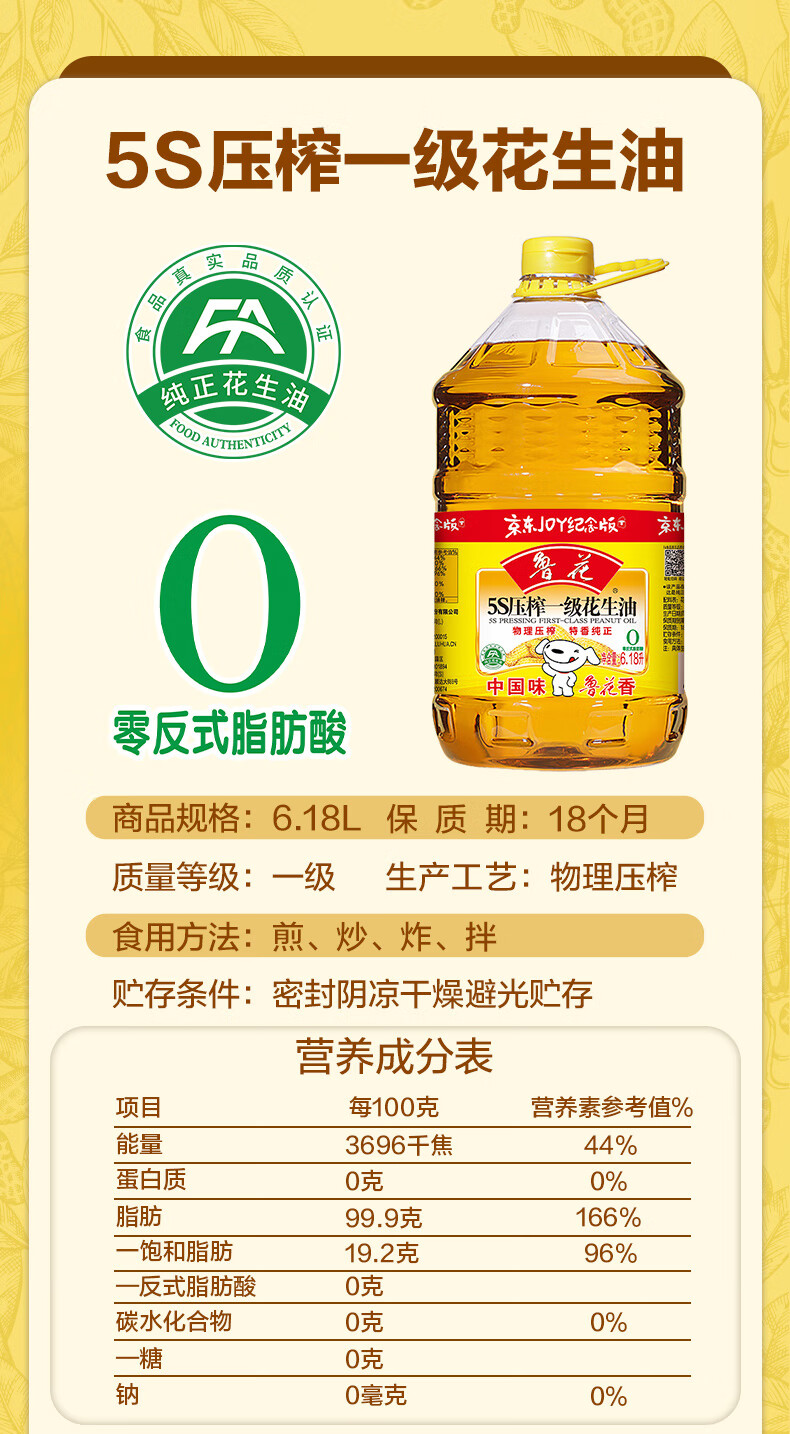 商品名称:鲁花【保真花生油】 5S物理压榨 一级 花生油6.18L