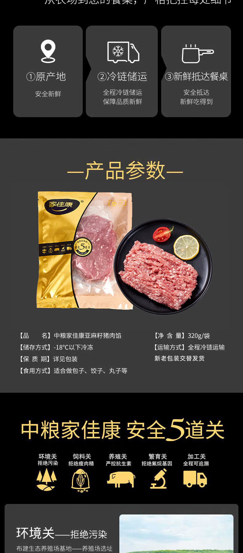 • 包装清单:中粮家佳康亚麻籽猪精肉糜320g*1