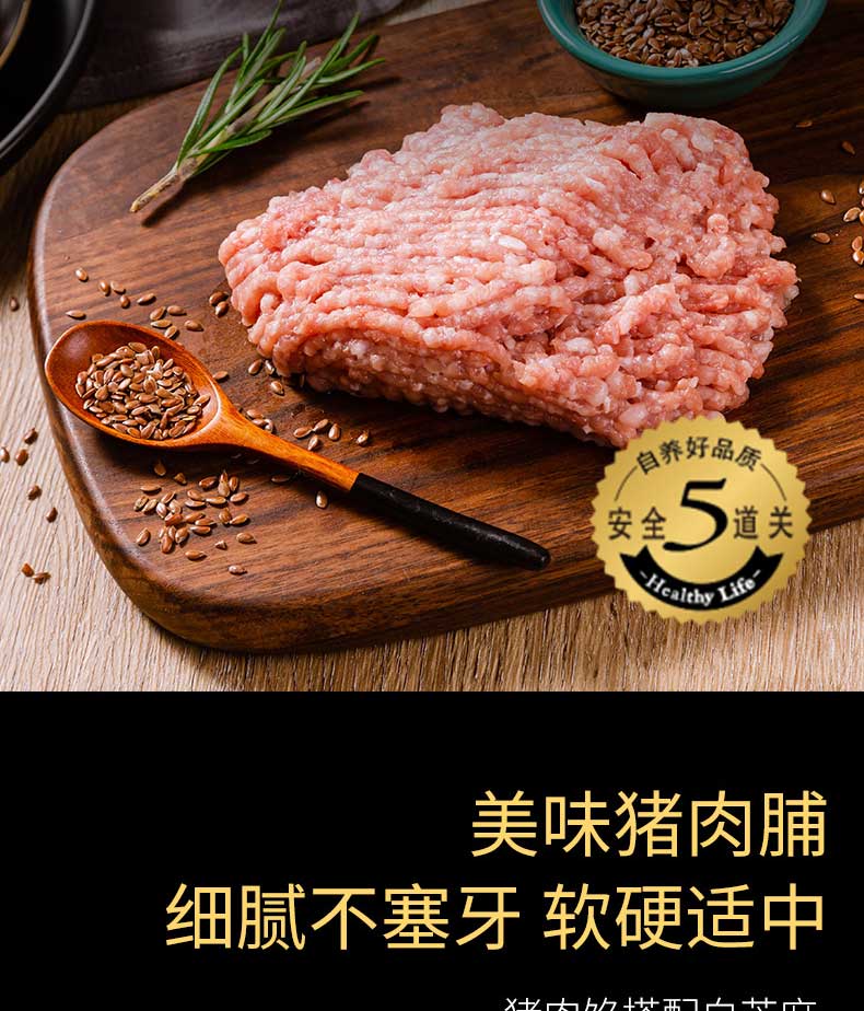 自营家佳康无抗亚麻籽猪肉馅320g 冷冻肉糜包子饺子丸子馅 国产猪肉生鲜