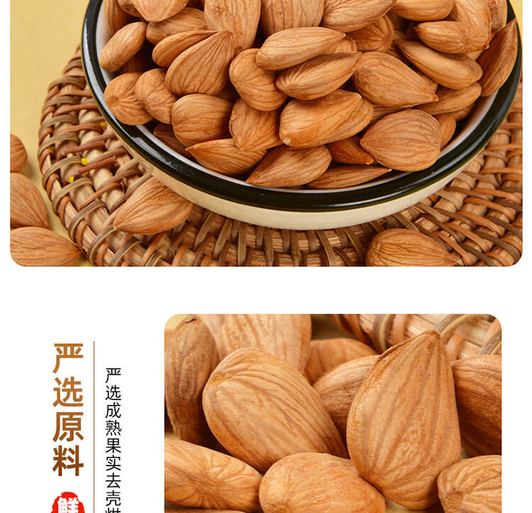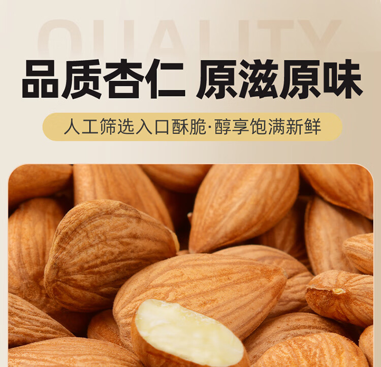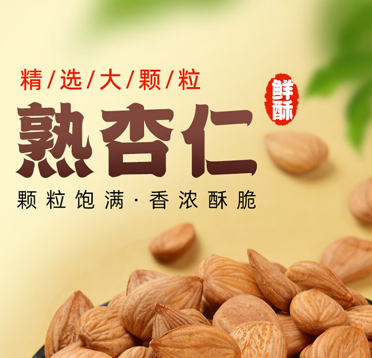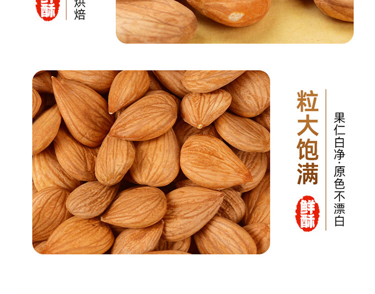 自营拾善方熟杏仁原味无添加无糖南炒大甜杏仁干果正宗坚果零食的功效与作用