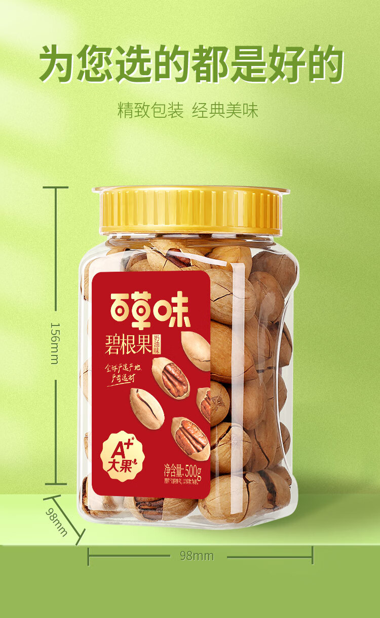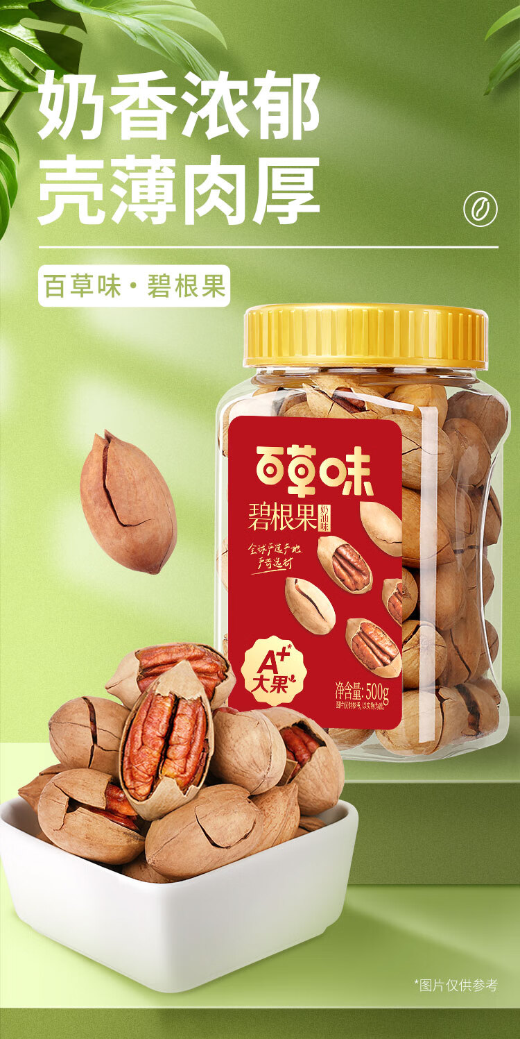 商品名称:百草味 罐装碧根果500g 奶油味每日坚果干果手剥零食特产送礼