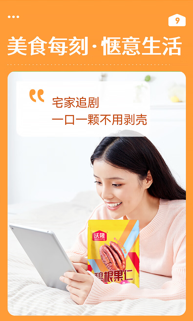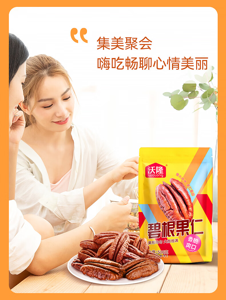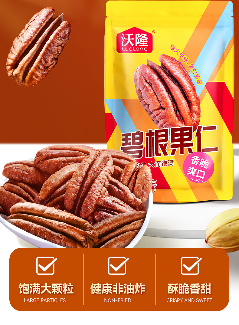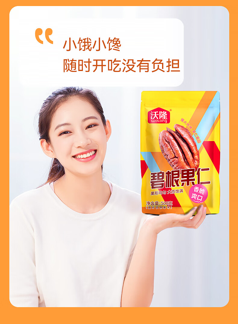 商品名称:沃隆碧根果仁500g袋装去壳即食干果炒货长寿果仁办公室休闲零食