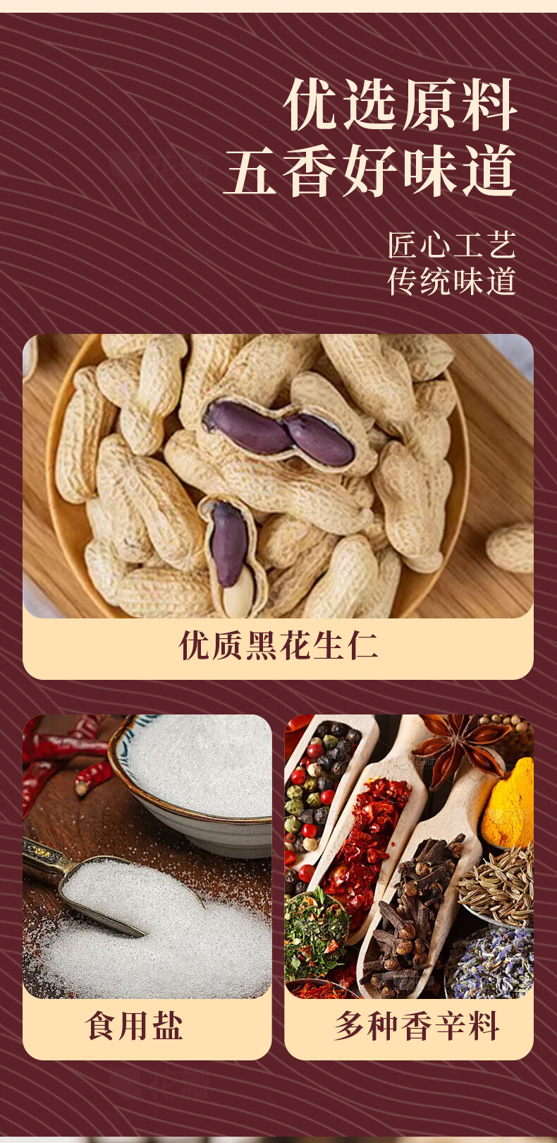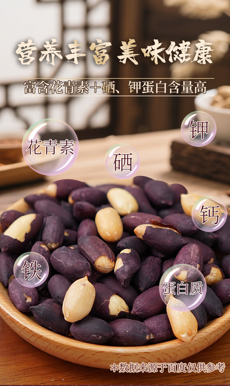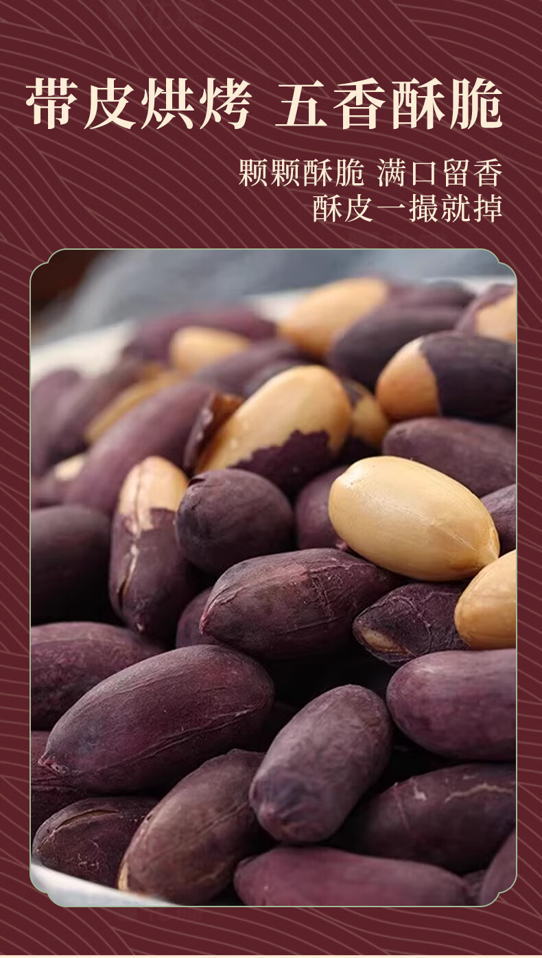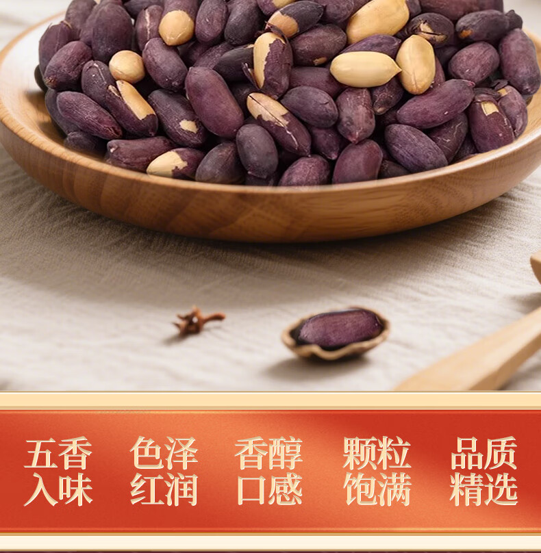 商品名称:俏己食 黑花生山东特产紫黑皮五香烤花生米富硒坚果下酒菜解馋零食品1斤