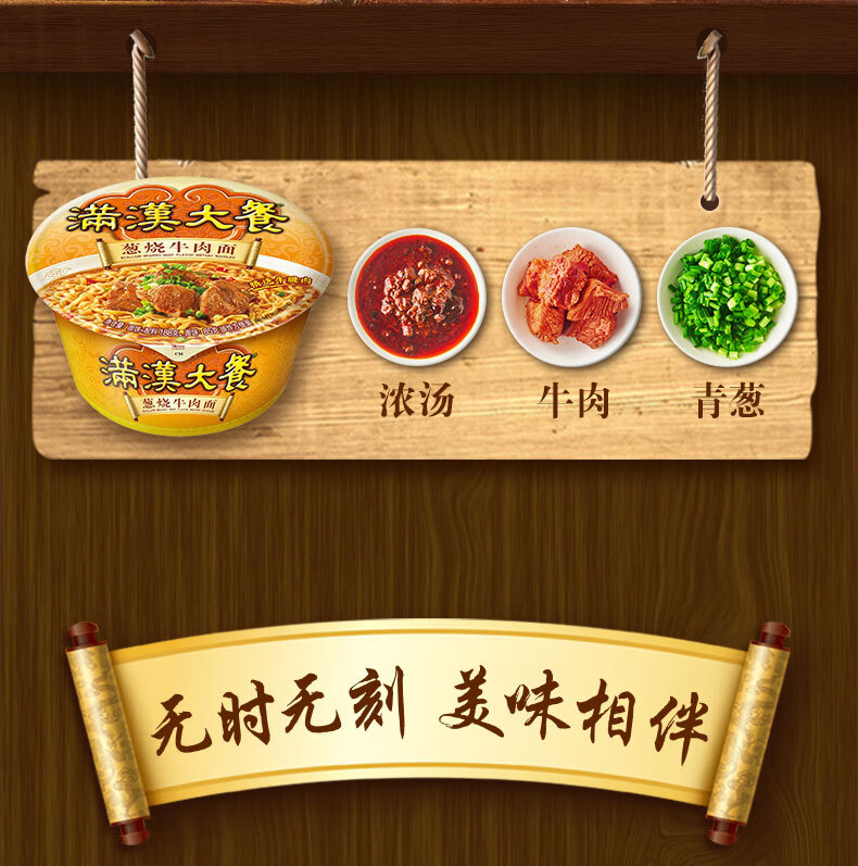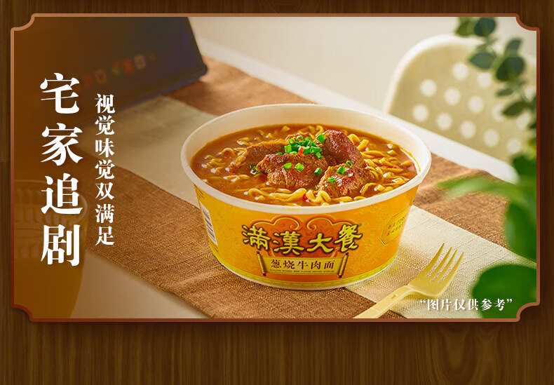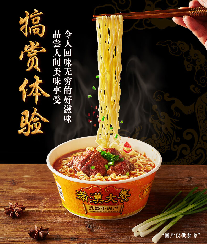 • 包装清单:满汉大餐 葱烧牛肉面 188g*8碗 整箱装 整块牛肉 台湾经典