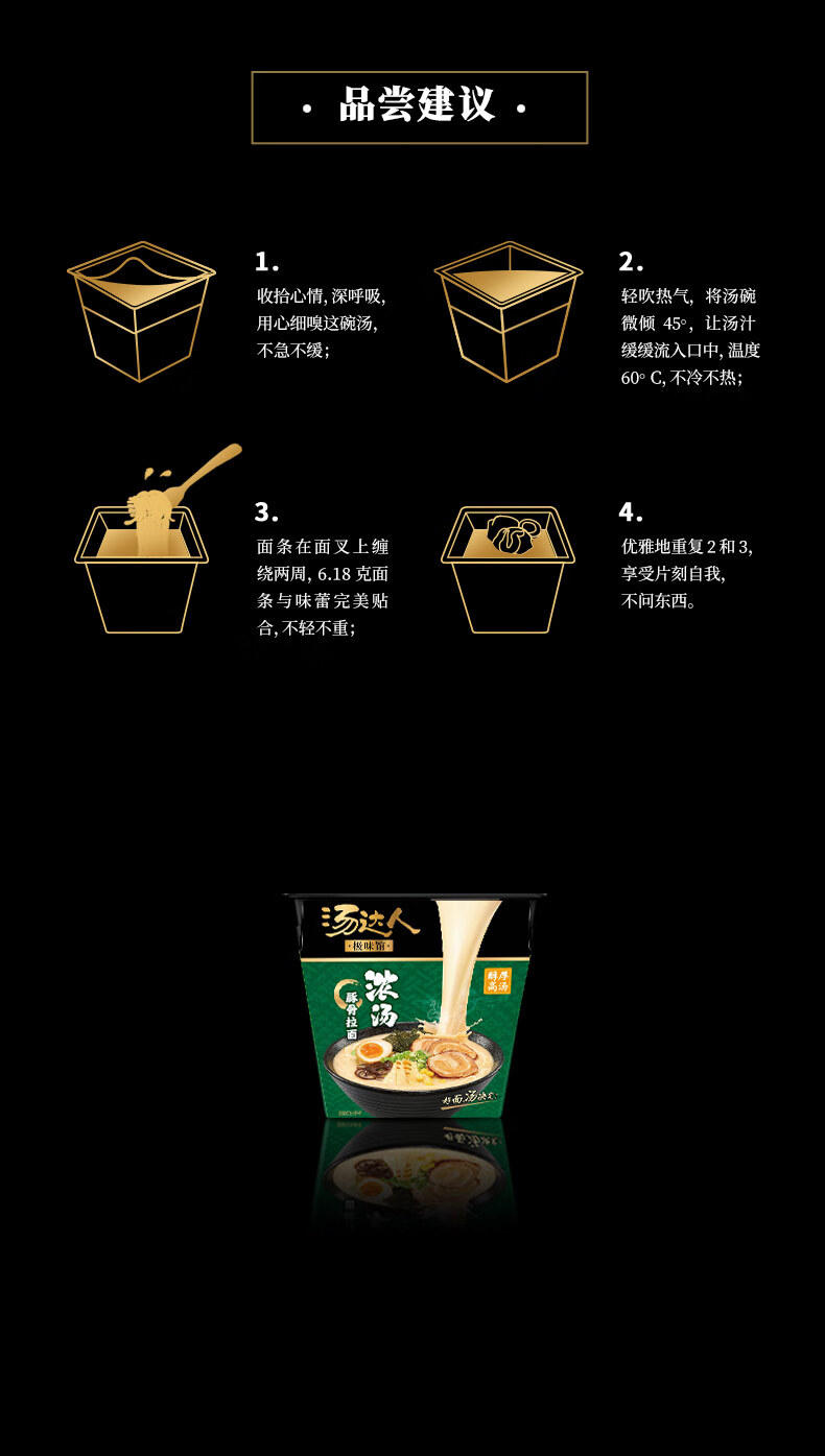 • 包装清单:统一 汤达人 极味馆 熊本风味 豚骨拉面 105克*6碗 整箱装
