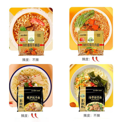 • 包装清单:五谷道场 非油炸方便面红烧牛肉面五连包*1 番茄牛腩面五连包*1 海带排骨面五连包*1 酸笋肥牛面五连包*1
