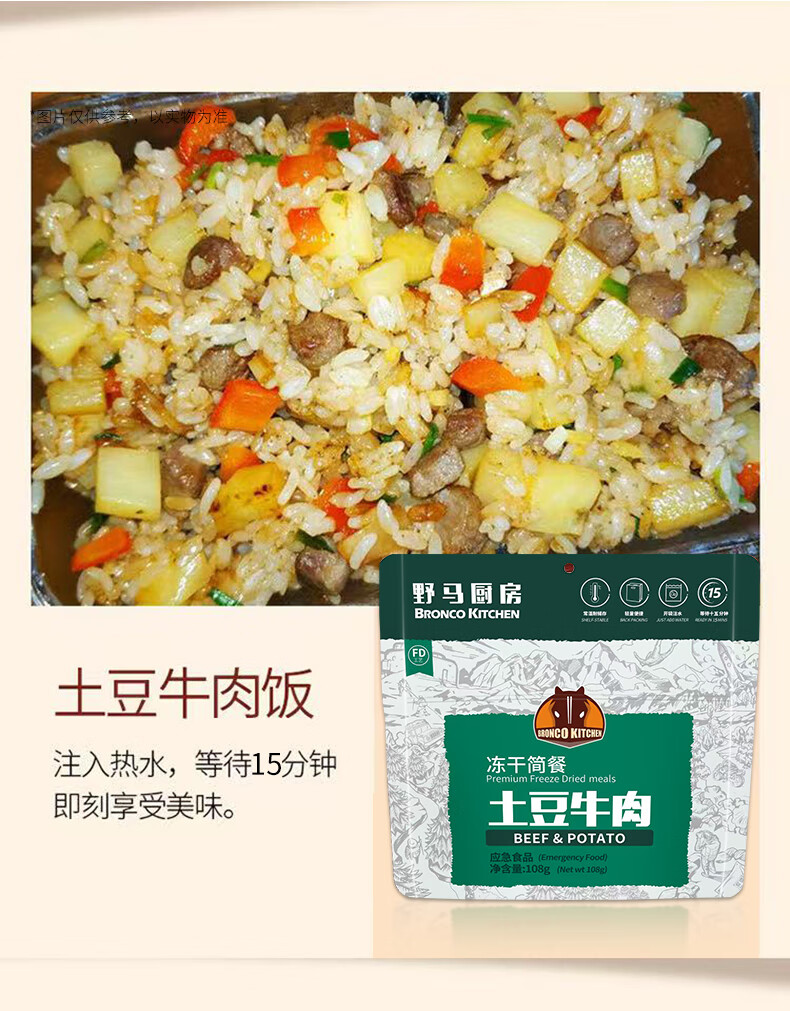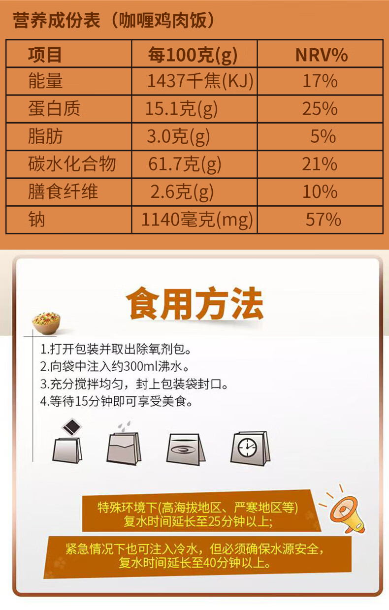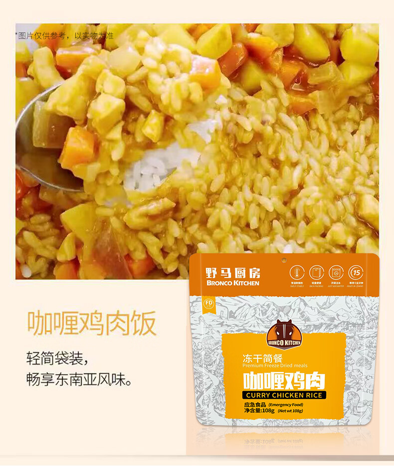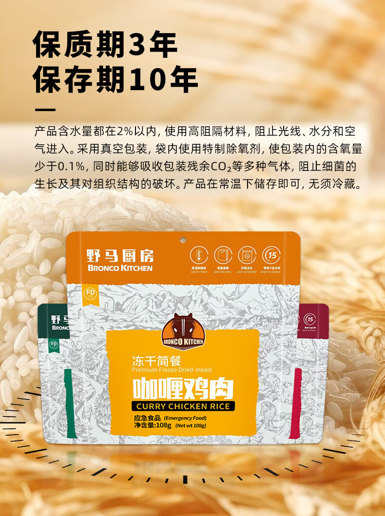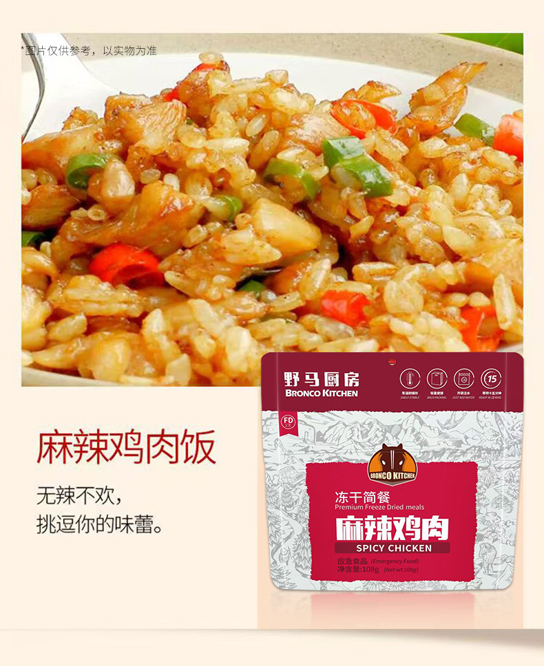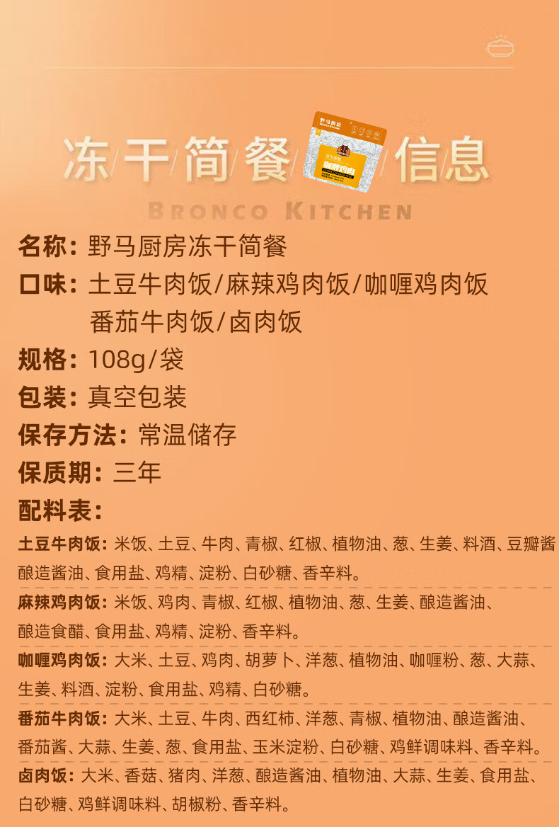 商品名称:户外即食冻干米饭应急食品免煮冲泡脱水米拌饭救防灾应急口粮 整箱任选12袋108g*12(顺丰速发)