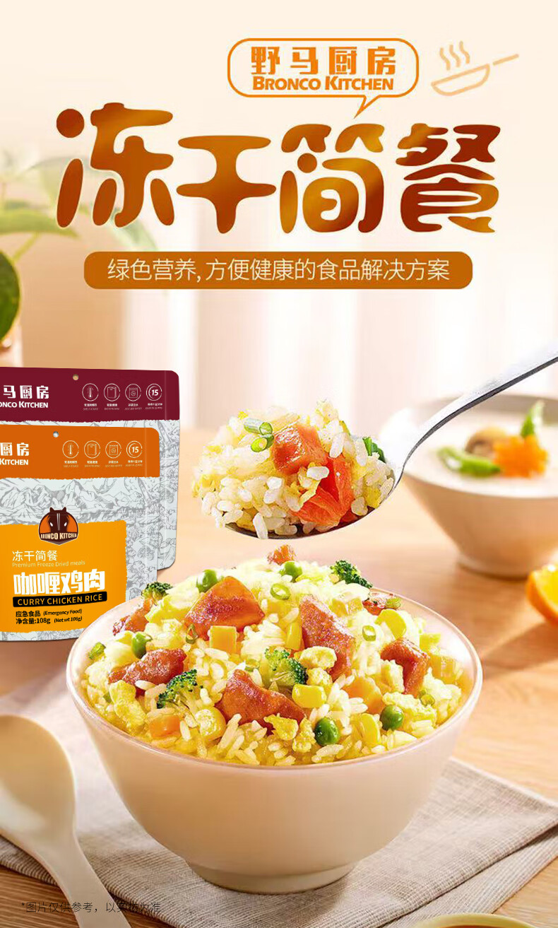 自营户外即食冻干米饭应急食品免煮冲泡脱水米拌饭救防灾应急口粮 整箱任选12袋108g*12(顺丰速发)