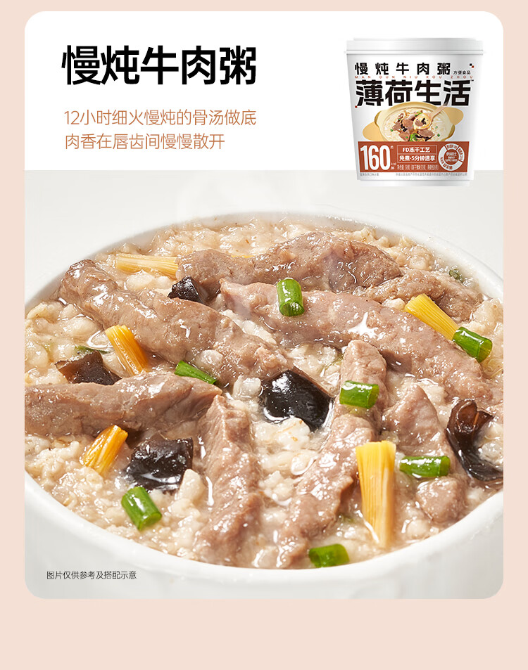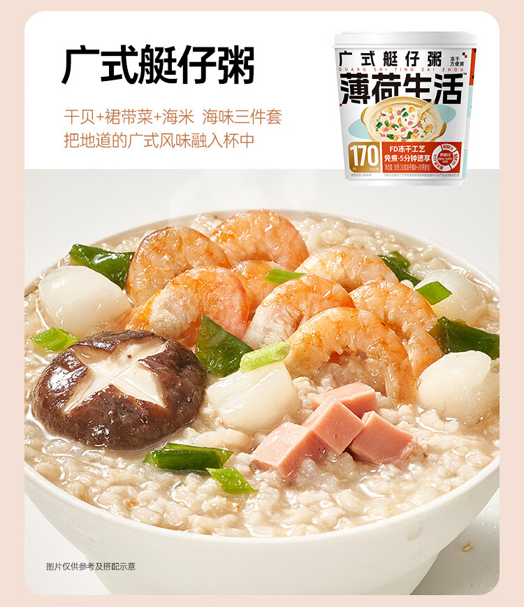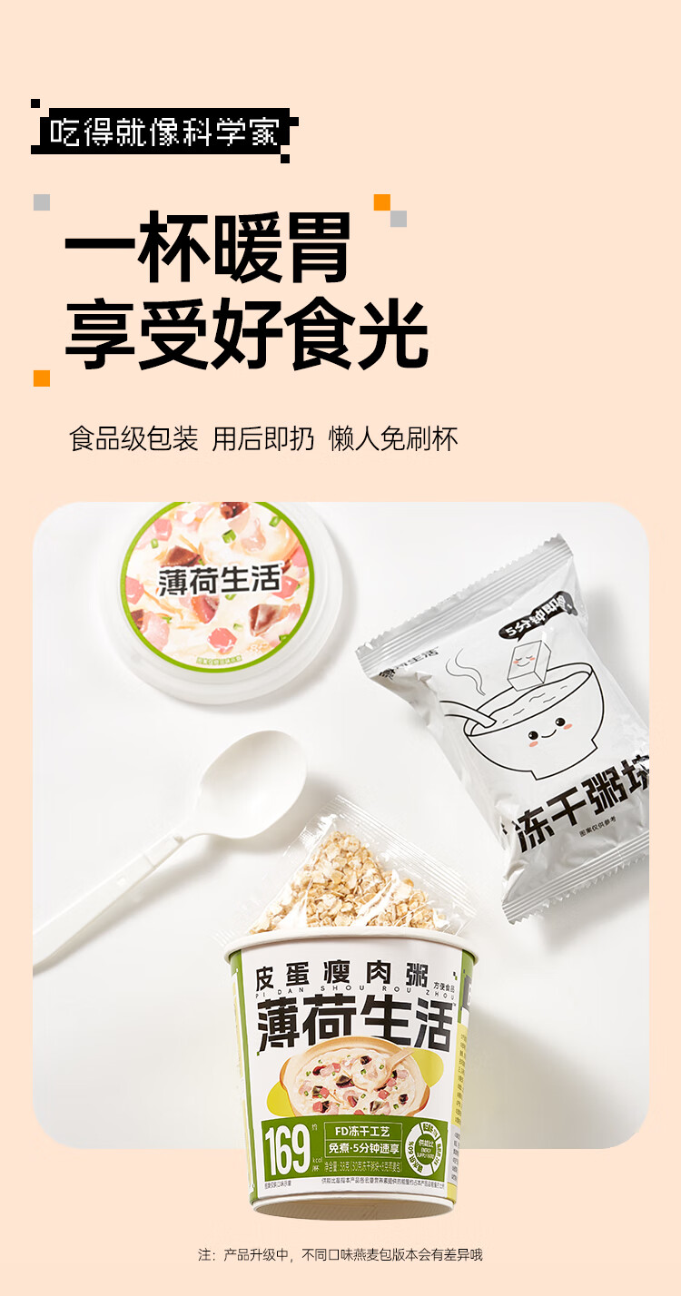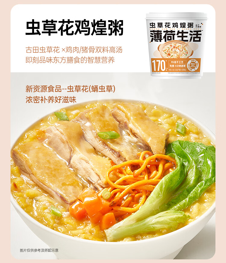 商品名称:薄荷健康燕麦粥冻干速食粥8桶冲泡即可享用美食营养健康 [虫草花鸡煌粥]8桶