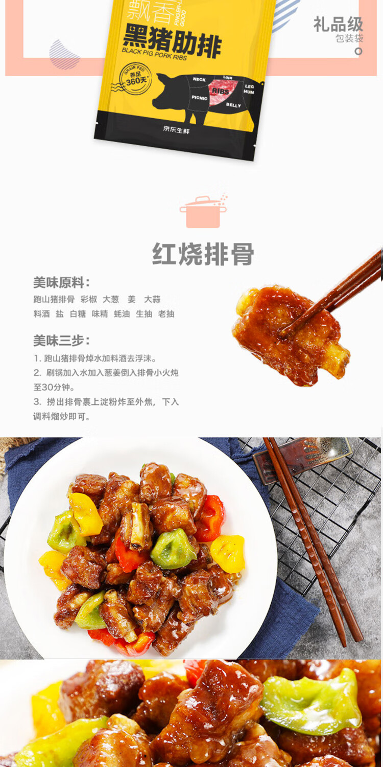 商品名称:京东跑山猪生态黑猪肋排净重4斤 新鲜速冻 煲汤烤肉食材