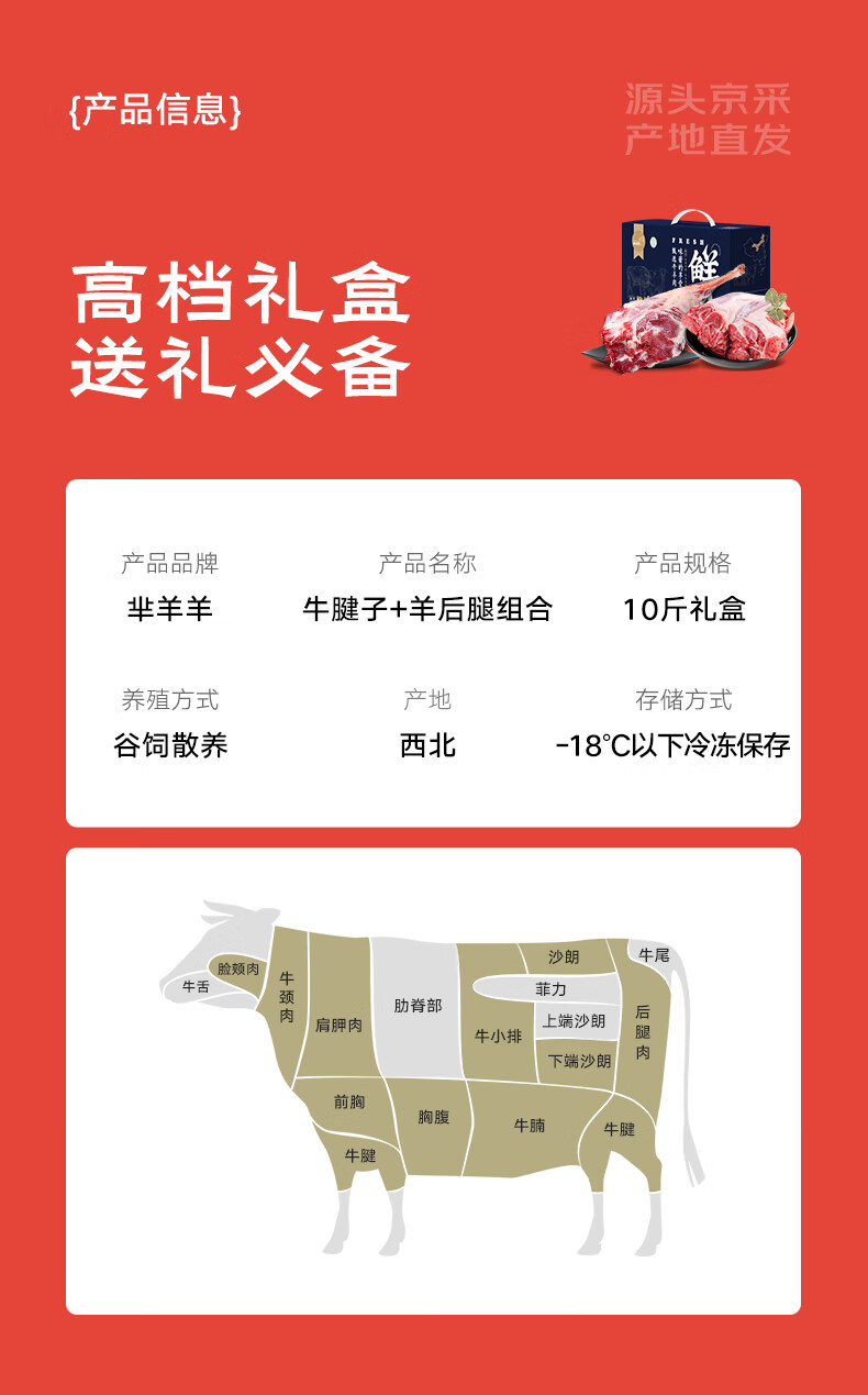 商品名称:芈羊羊国产黄牛肉 鲜切牛腱子5斤+羊后腿5斤礼盒 羊肉生鲜 烧烤源头直发