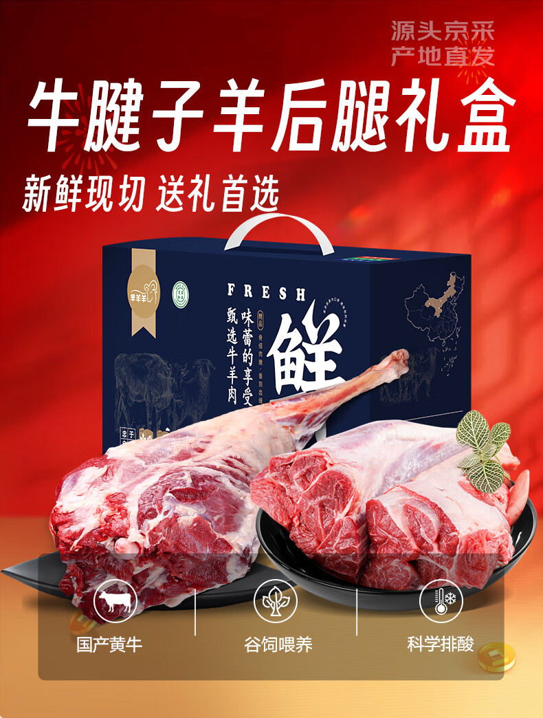 自营芈羊羊国产黄牛肉 鲜切牛腱子5斤+羊后腿5斤礼盒 羊肉生鲜 烧烤源头直发
