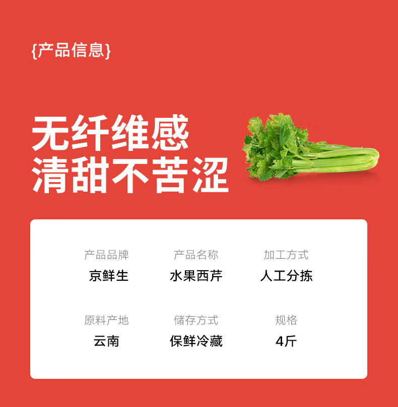 商品名称:京鲜生云南高原水果西芹 净重4斤装 新鲜采摘 源头直发
