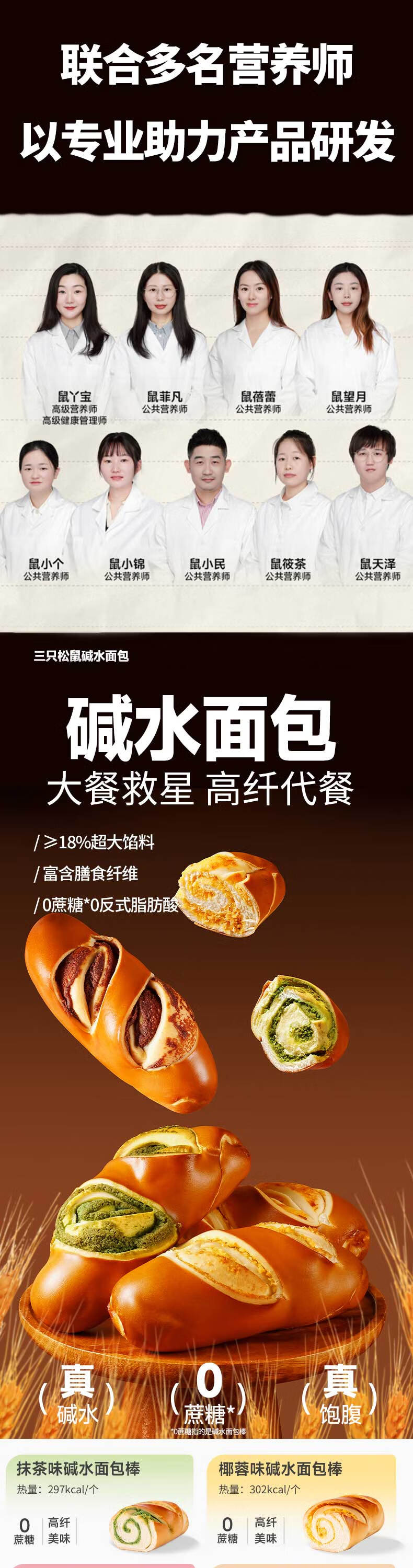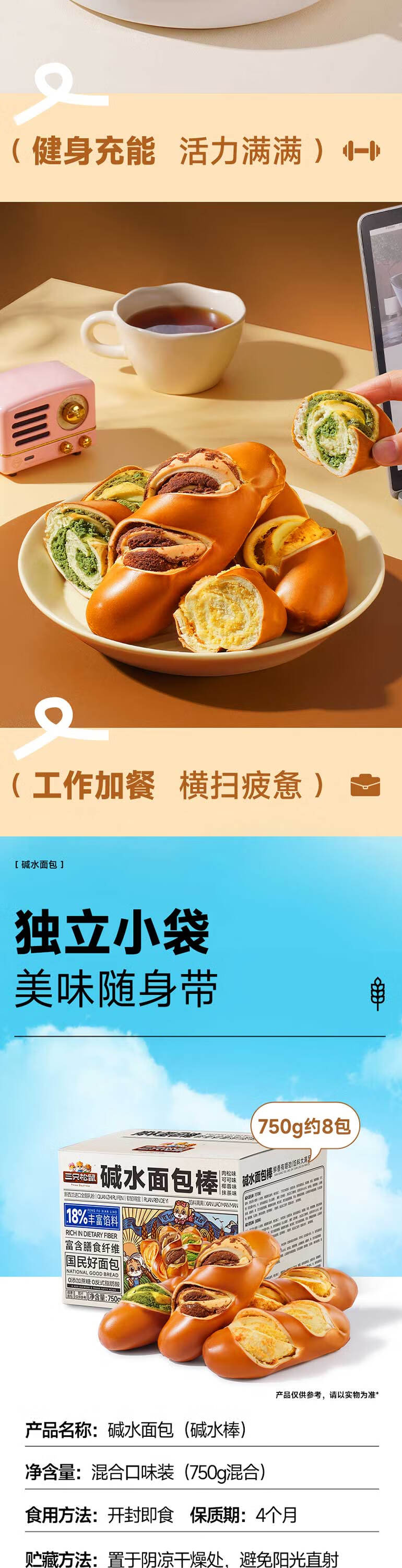 商品名称:三只松鼠碱水面包棒750g 0蔗糖混合口味早餐代餐糕点点心休闲零食充饥