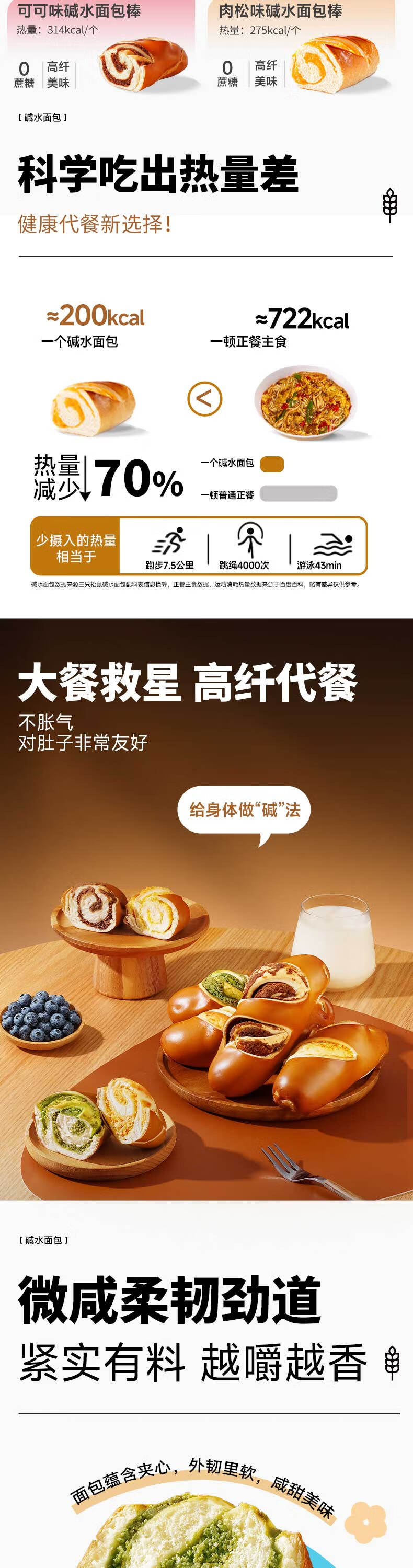 自营三只松鼠碱水面包棒750g 0蔗糖混合口味早餐代餐糕点点心休闲零食充饥
