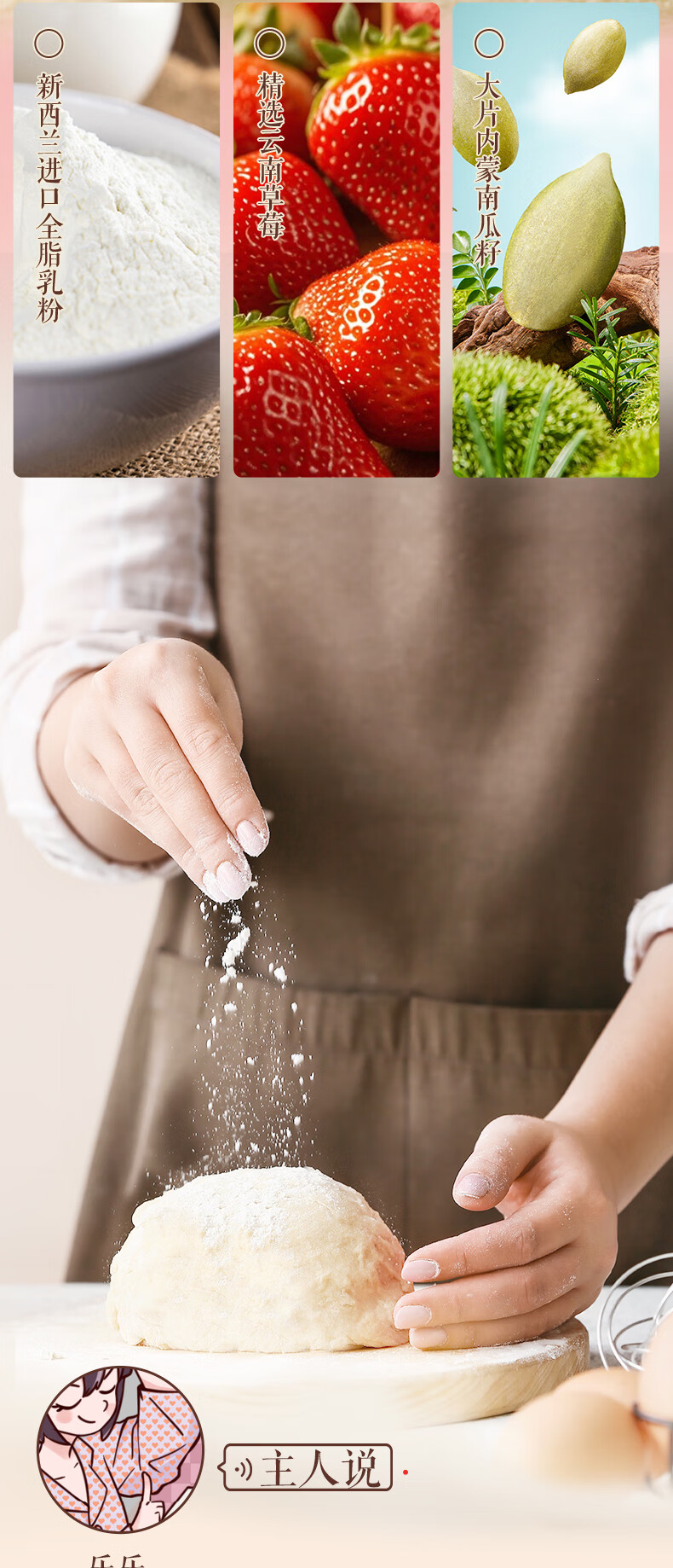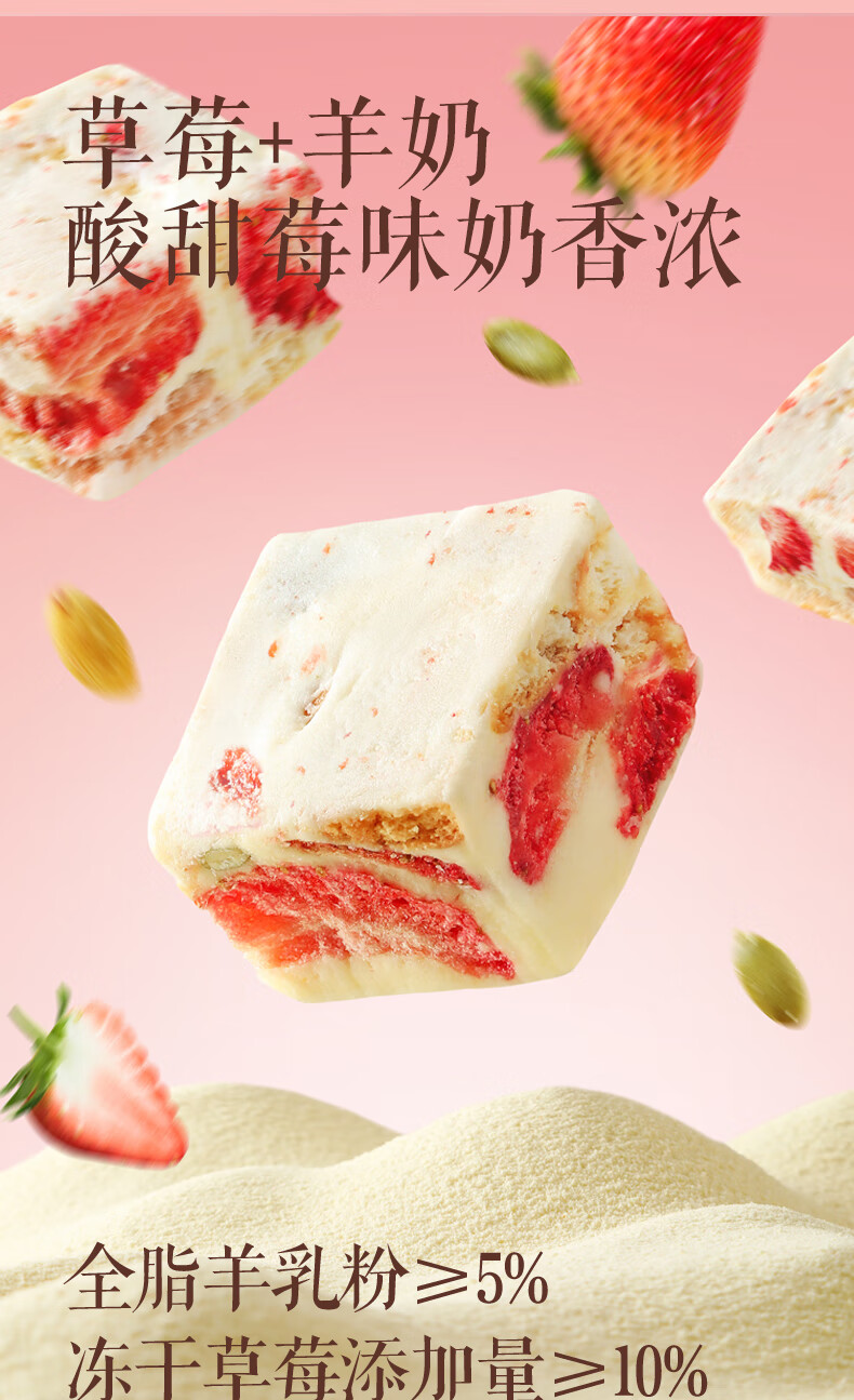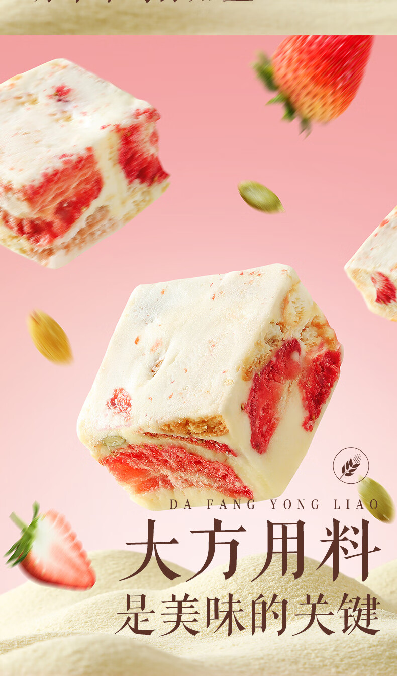 商品名称:三只松鼠冻干草莓羊奶奶芙500g 雪花酥手工拉丝饼干糕点牛轧糖网红零食