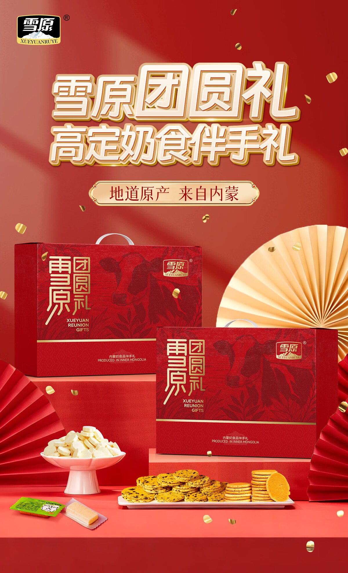 自营雪原内蒙特产团圆礼盒808g 奶片奶酪棒儿童节零食礼盒 中秋节日送礼