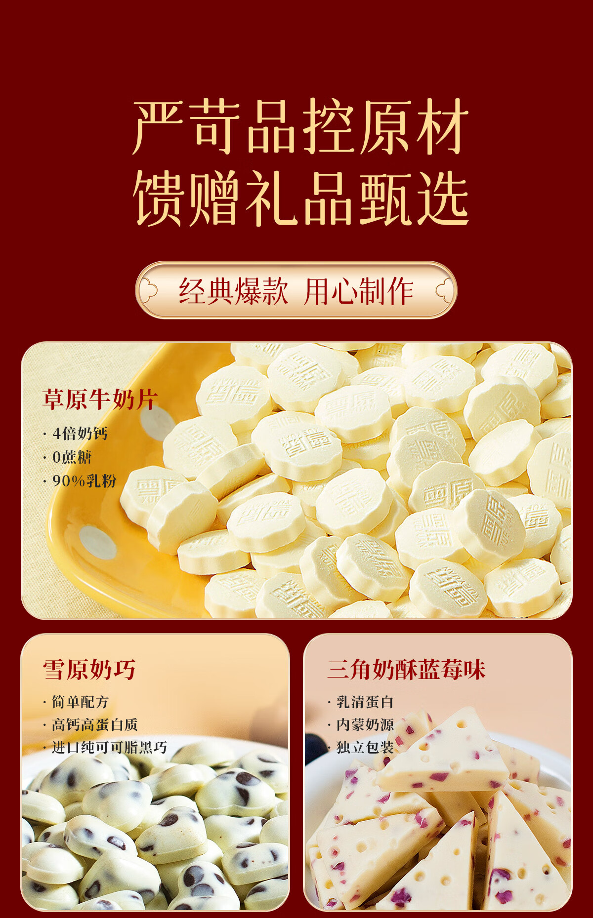 商品名称:雪原内蒙特产团圆礼盒808g 奶片奶酪棒儿童节零食礼盒 中秋节日送礼