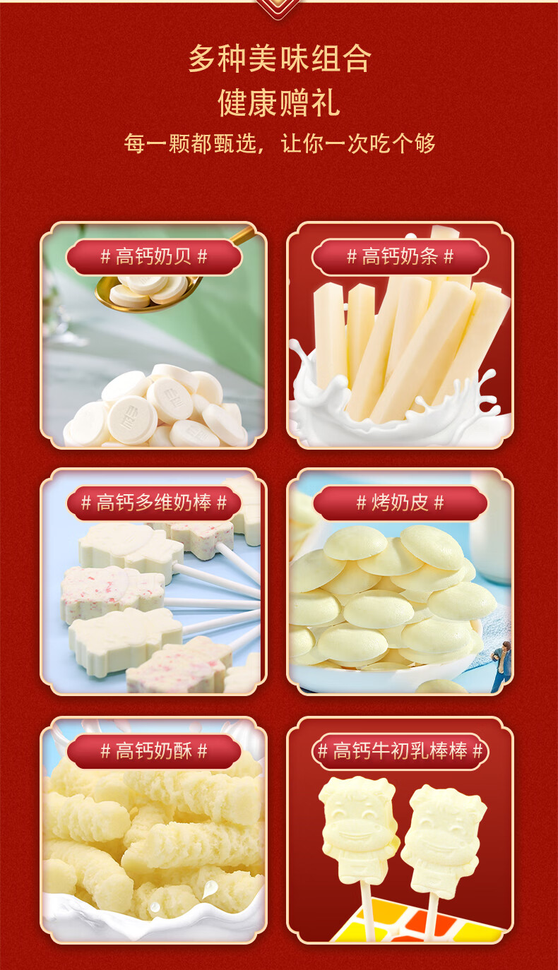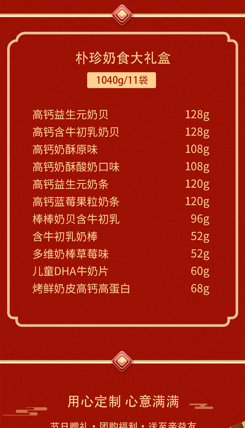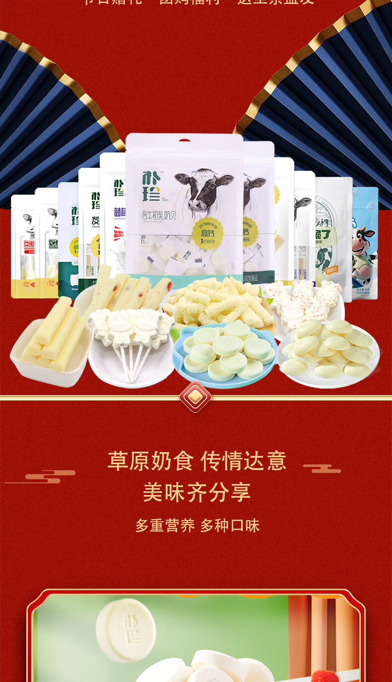 商品名称:朴珍内蒙特产礼盒团购福利节日送礼奶片奶贝奶酪条奶棒1016g零食礼包