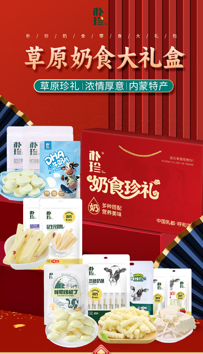 自营朴珍内蒙特产礼盒团购福利节日送礼奶片奶贝奶酪条奶棒1016g零食礼包