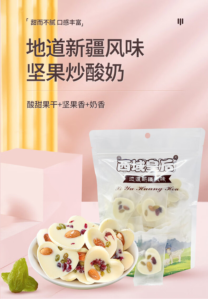 自营西域皇后新疆特产坚果炒酸奶500g巴旦木奶酪疙瘩片皮子巧克力果干零食