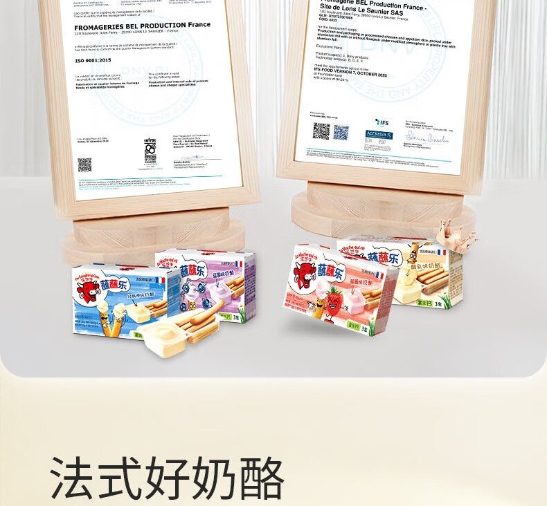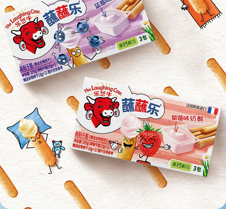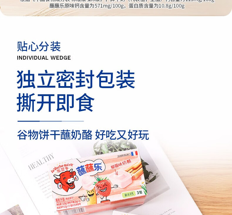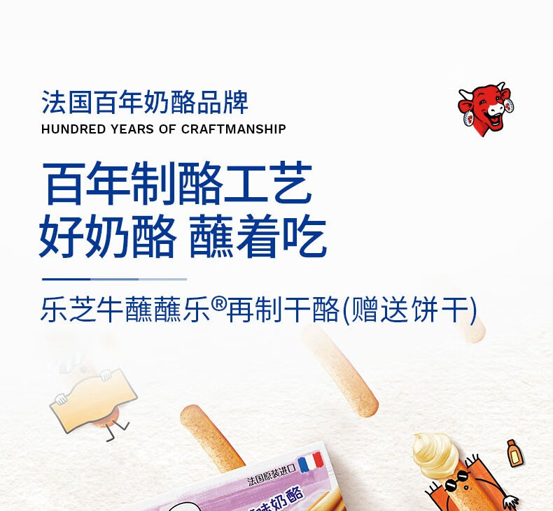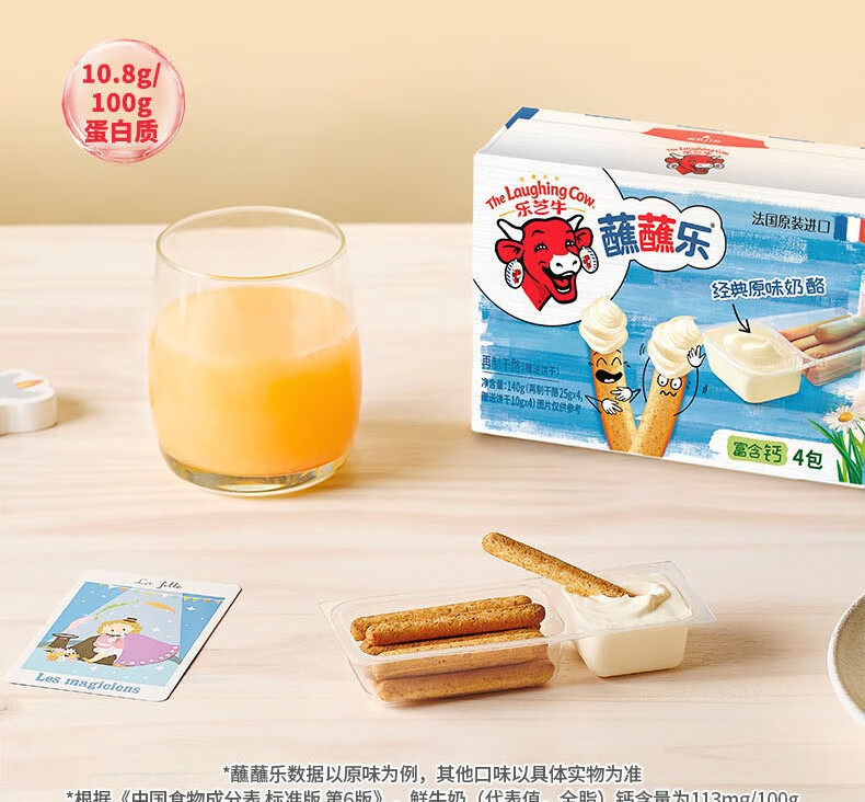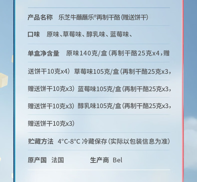 • 包装清单:乐芝牛 蘸蘸乐再制干酪经典原味奶酪 140g/盒*1