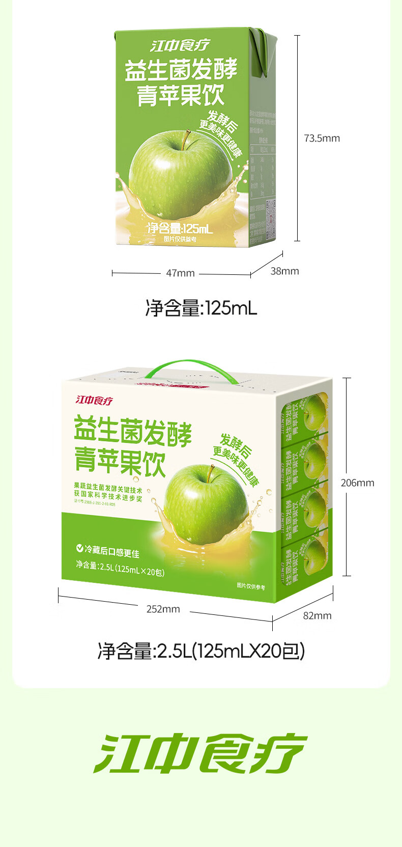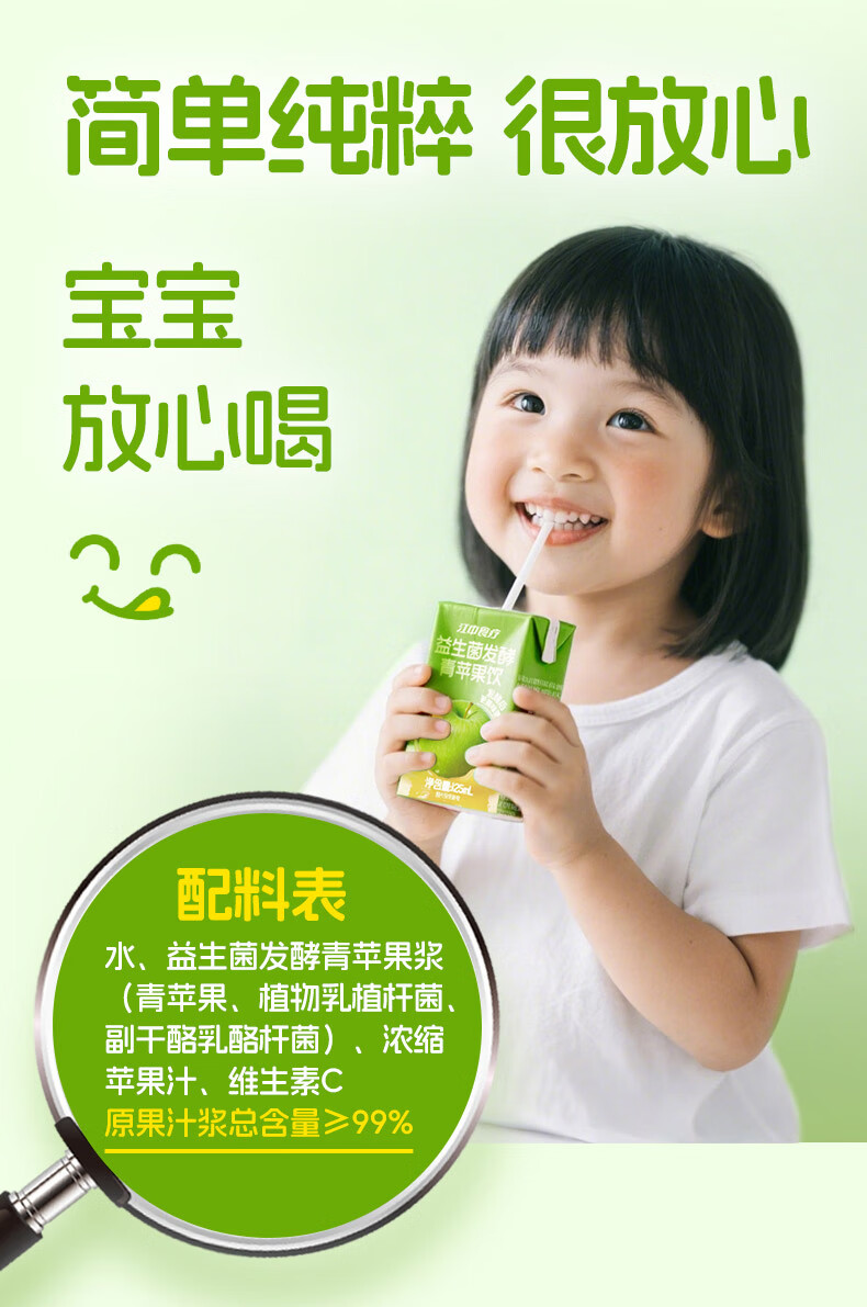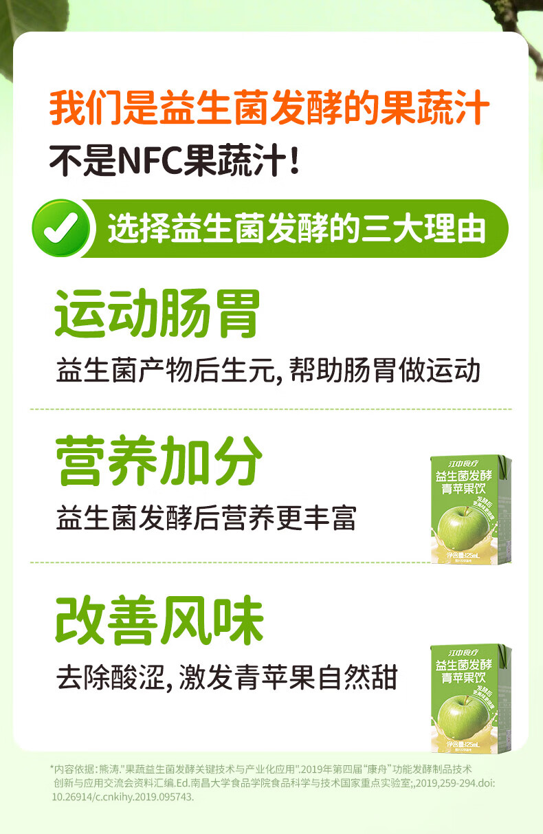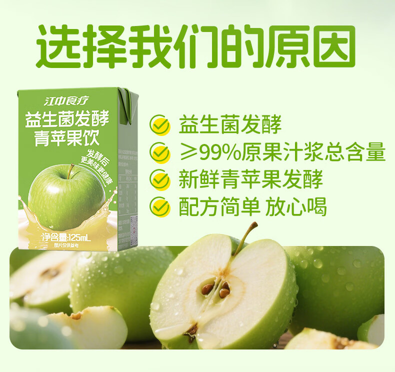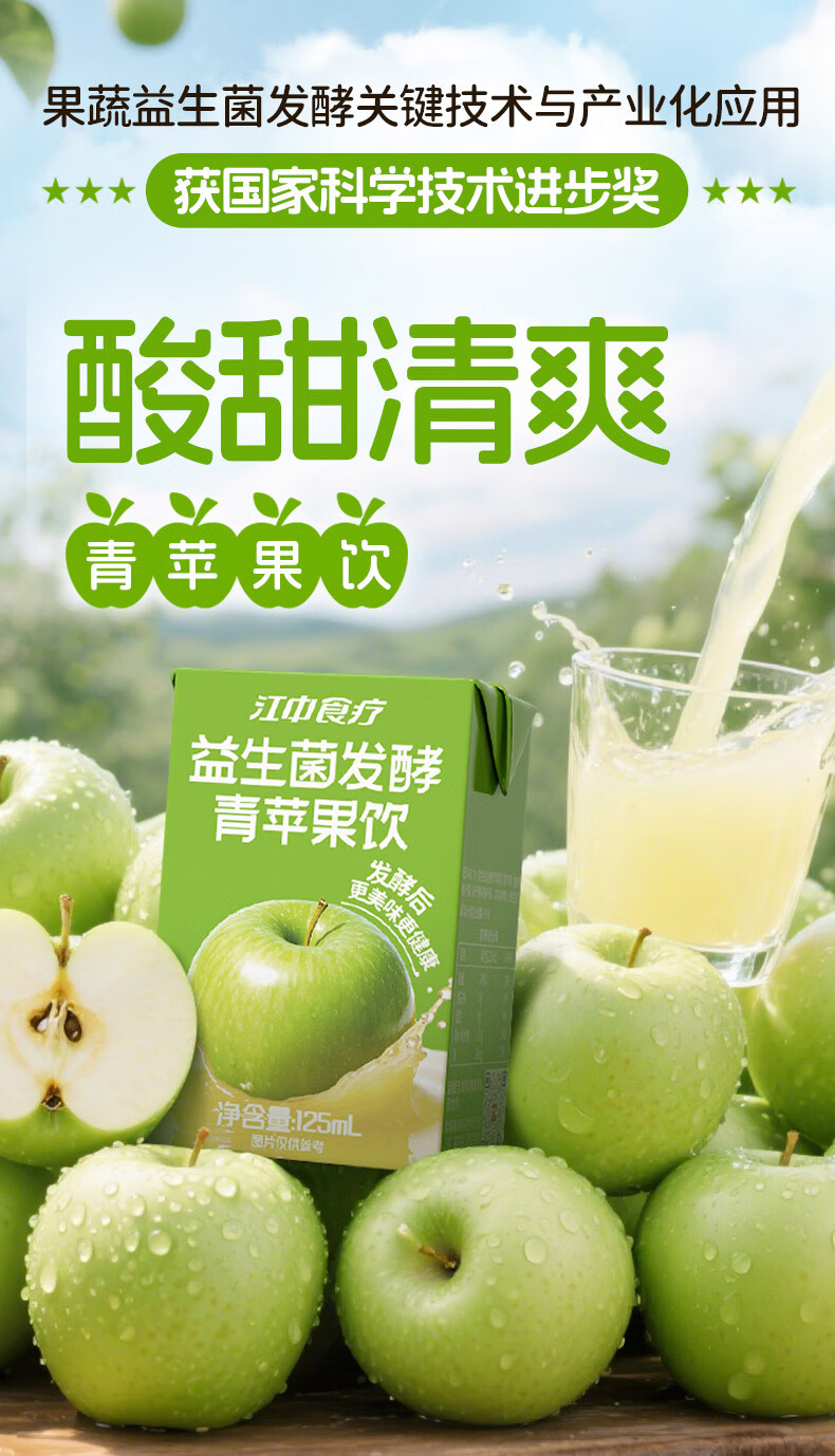 商品名称:江中食疗益生菌发酵青苹果汁125ml*20盒0脂营养酸甜清爽果蔬汁饮品礼盒
