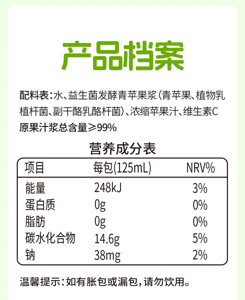 • 包装清单:青苹果饮125ml/盒*20盒