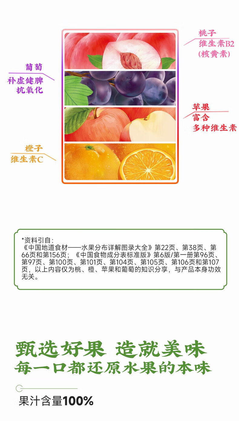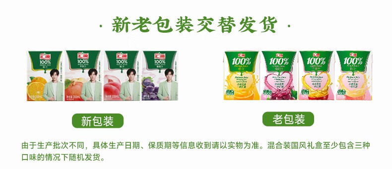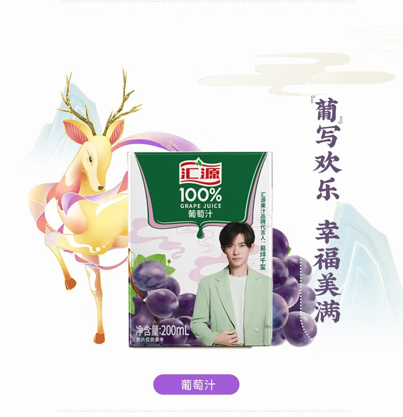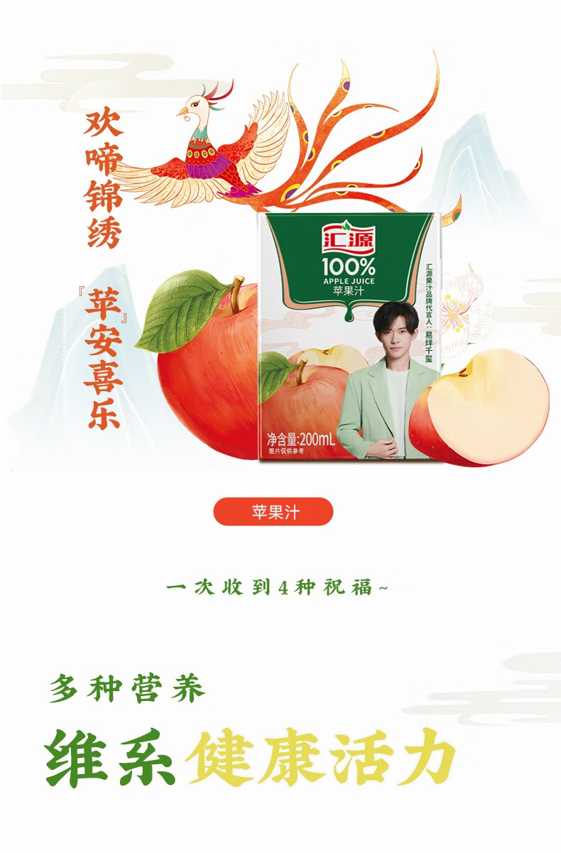 商品名称:汇源果汁汇源100%橙汁桃汁苹果汁葡萄汁0无添加纯果汁饮料浓缩果蔬汁 混合口味125ml*15盒【礼盒装】
