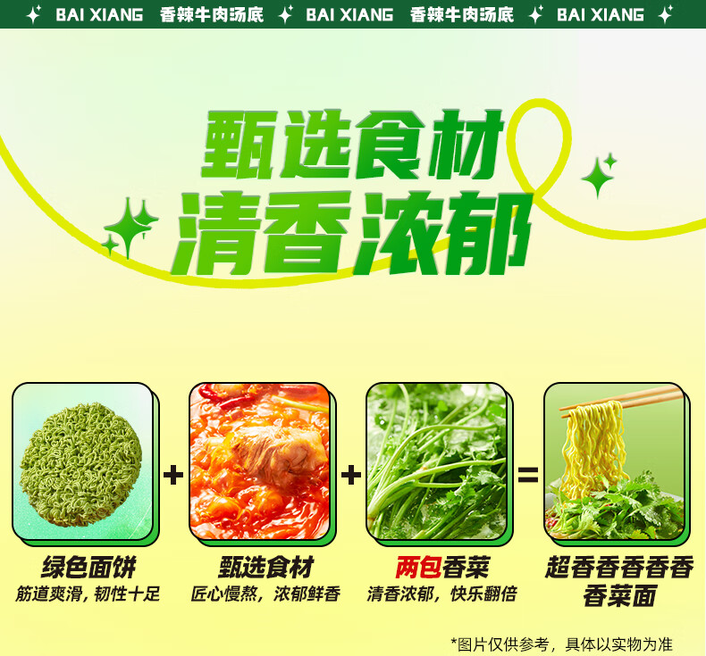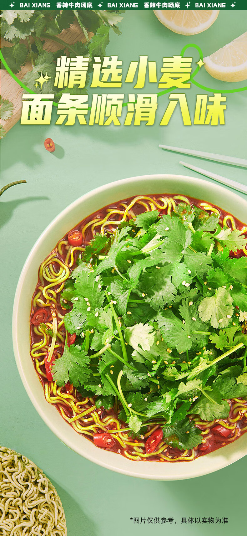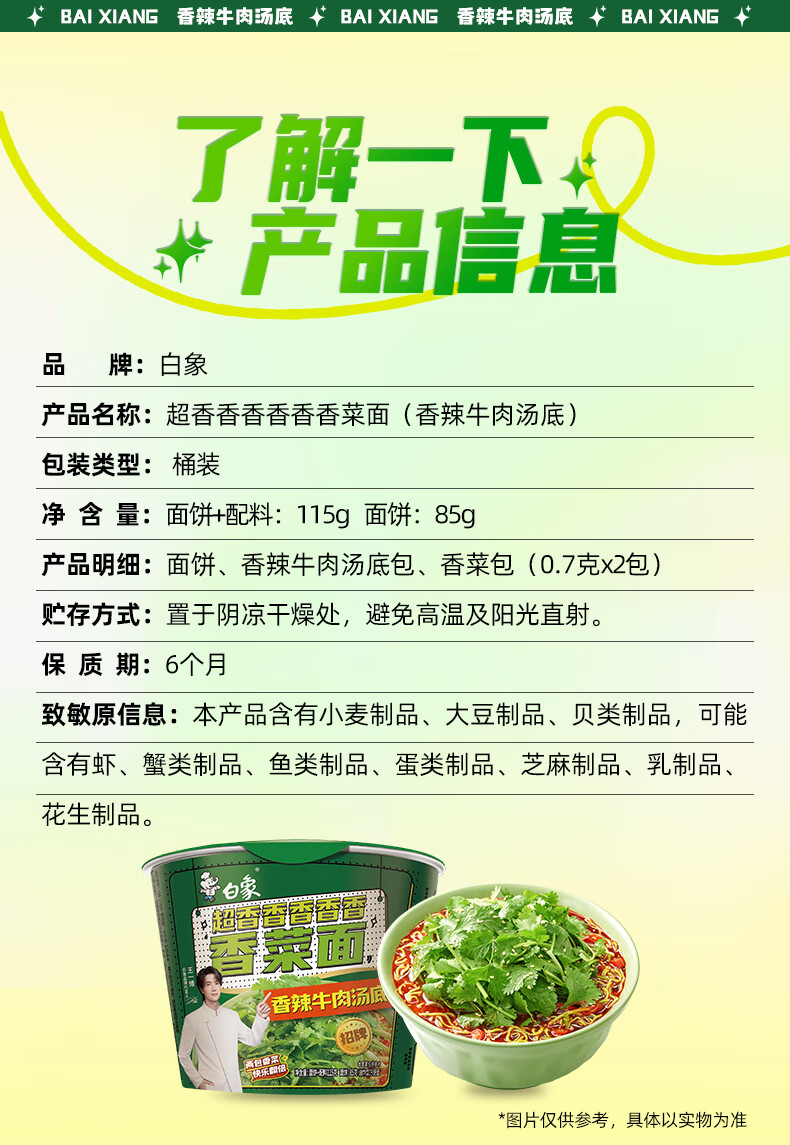 商品名称:白象 【王一博代言】方便面 香菜面115g*12桶香辣牛肉味泡面整箱装