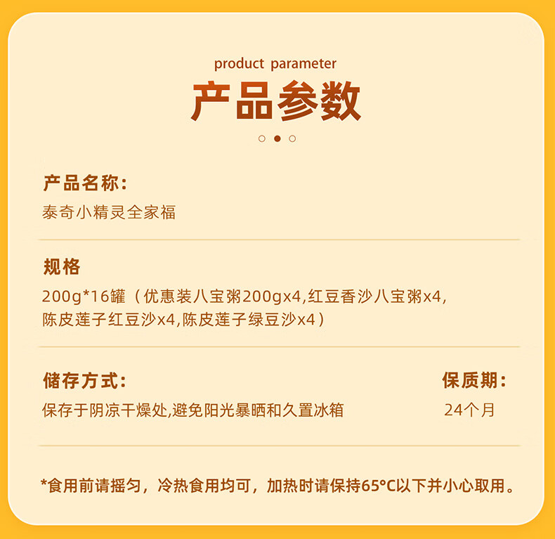 • 包装清单:泰奇小精灵全家福礼盒(200g*16罐)*1