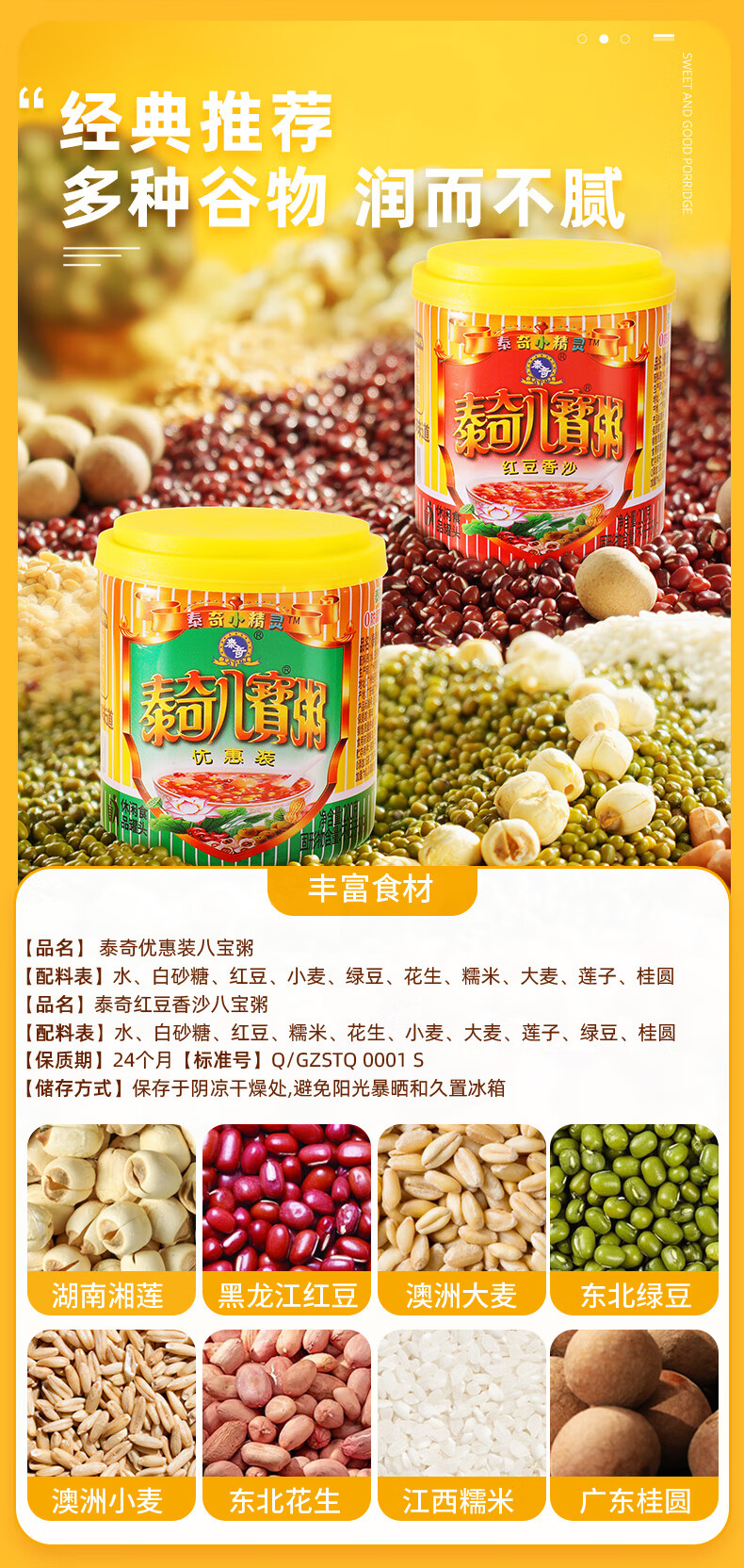 商品名称:泰奇八宝粥0添加速食粥早餐粥混合口味装200g*16罐礼盒装送礼