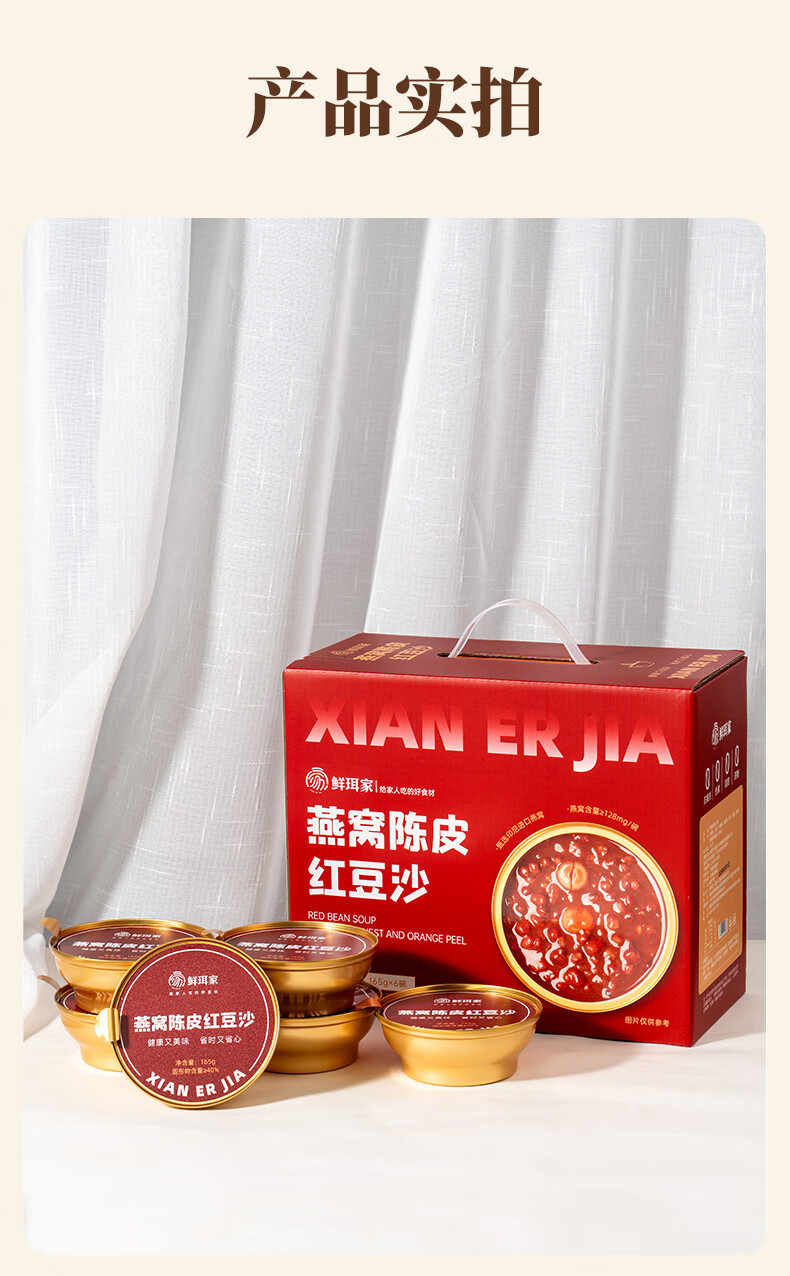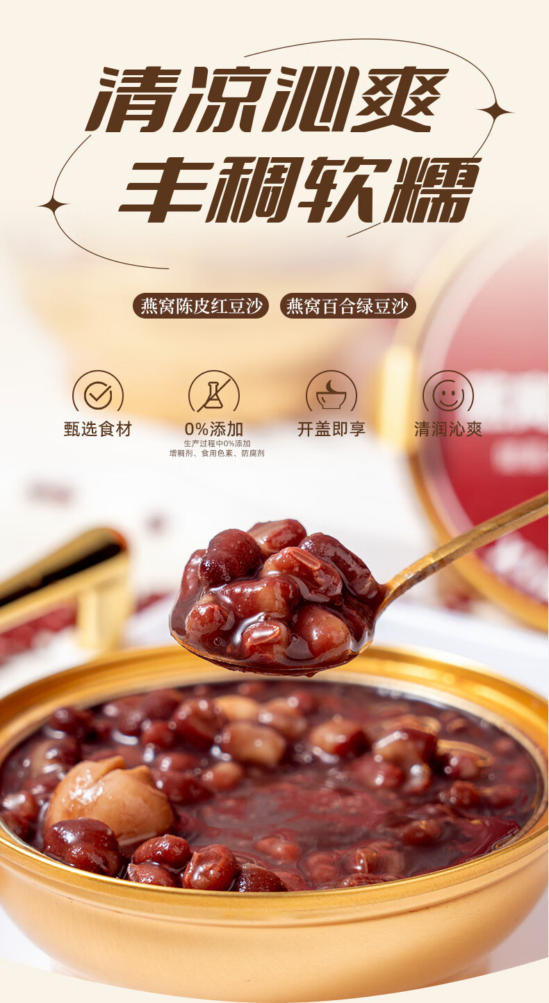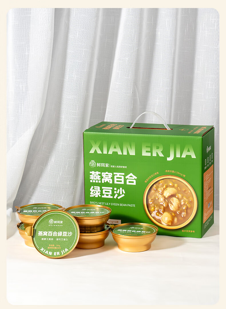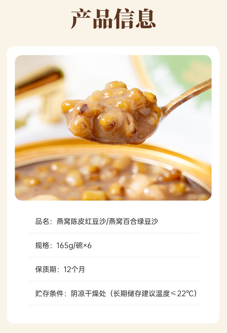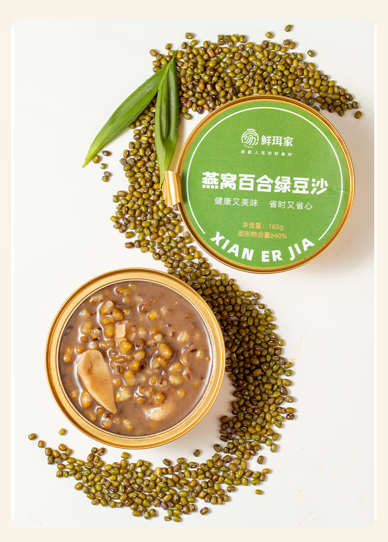 商品名称:鲜珥家燕窝陈皮红豆沙百合绿豆沙即食0蔗糖孕妇早餐代餐速食粥八宝粥 燕窝百合绿豆沙165*10碗