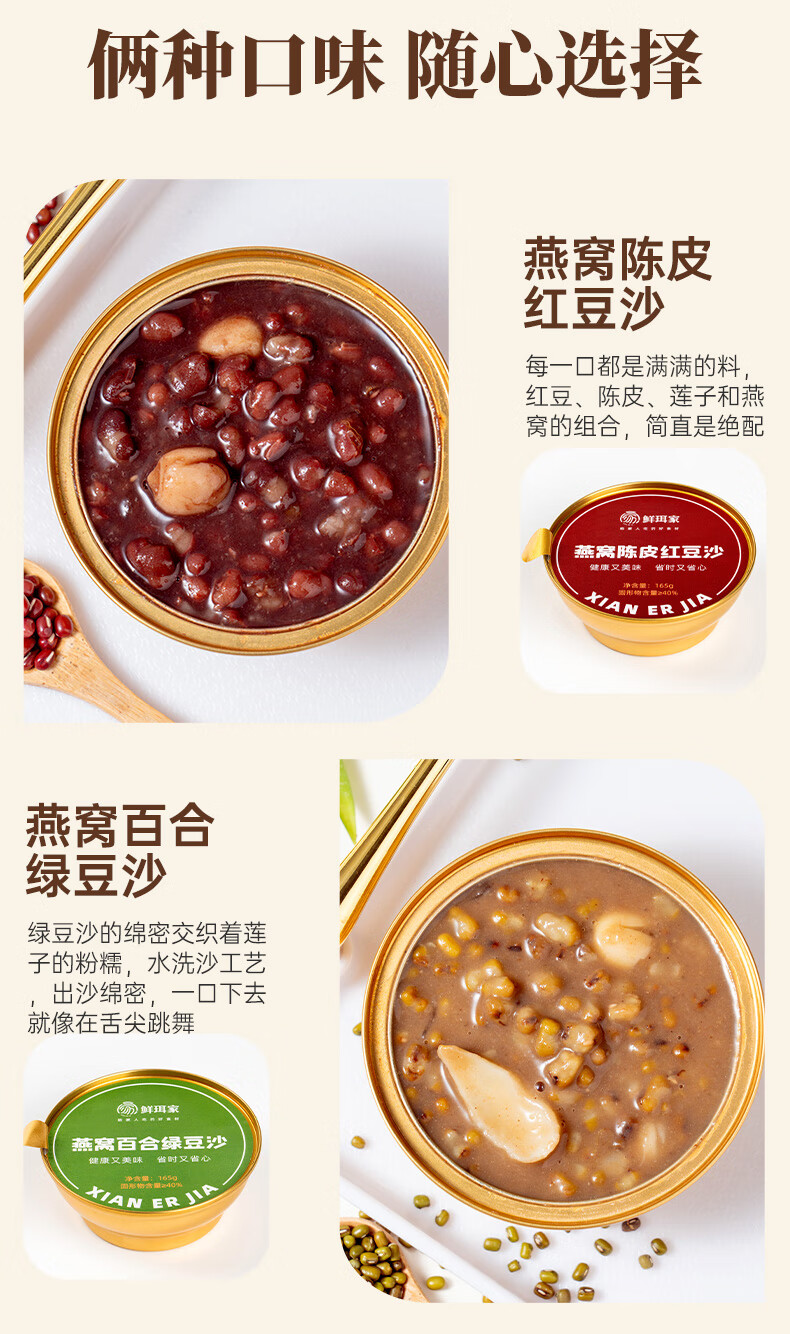 自营鲜珥家燕窝陈皮红豆沙百合绿豆沙即食0蔗糖孕妇早餐代餐速食粥八宝粥 燕窝百合绿豆沙165*10碗