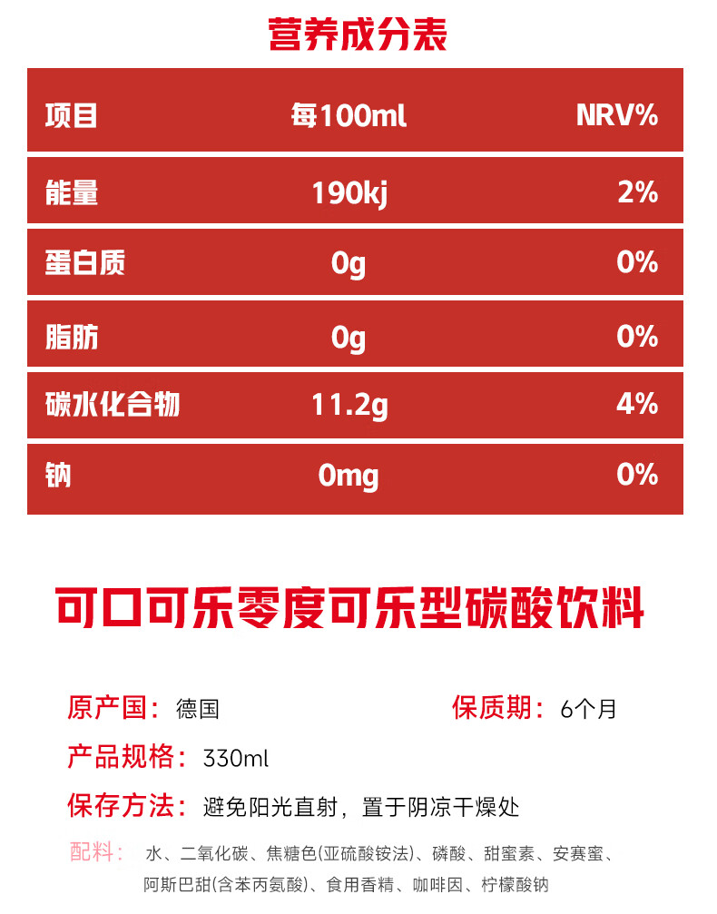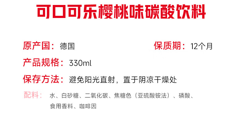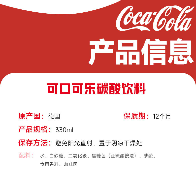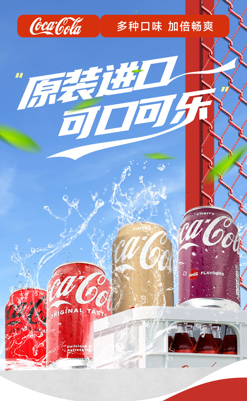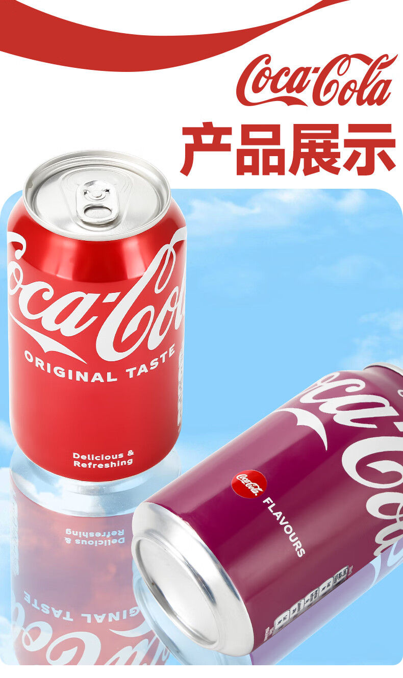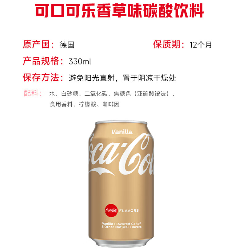 商品名称:可口可乐汽水 德国原装进口 香草味可乐罐装整箱24罐 原味碳酸饮料气泡水 香草味330mL*24罐整箱