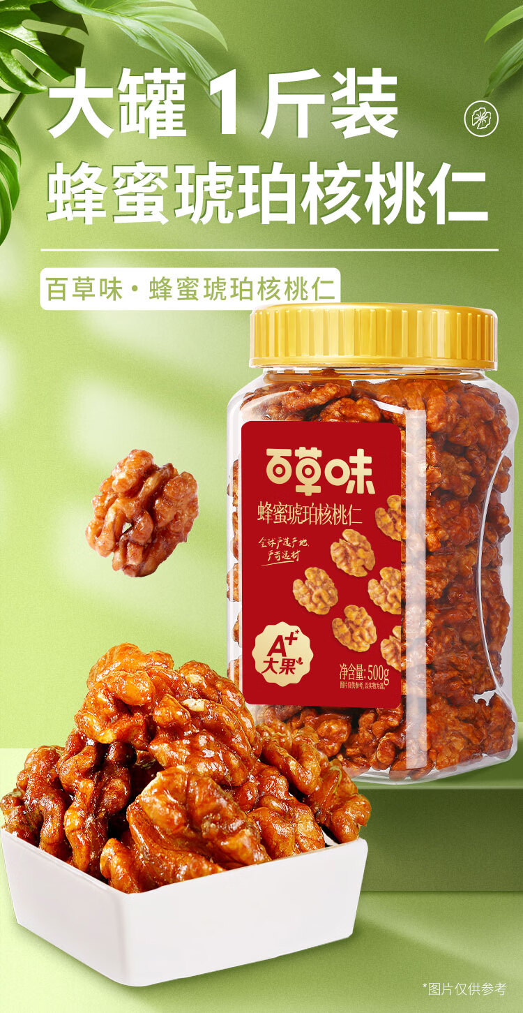 商品名称:百草味蜂蜜琥珀核桃仁500g 罐装即食熟核桃仁坚果干果零食