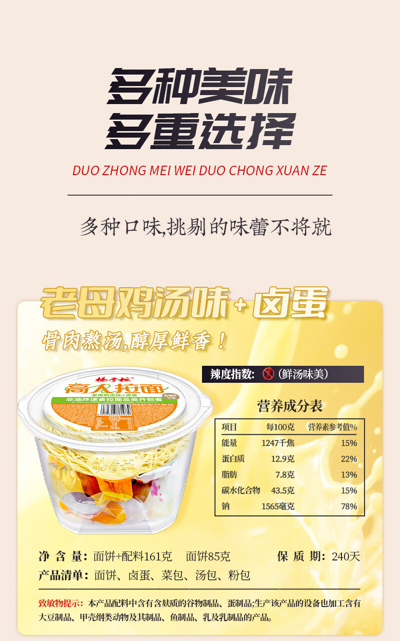 商品名称:杨掌柜高人拉面(芝麻花生+浓情番茄+山椒肥牛+港式肥汁)混合157g*12桶