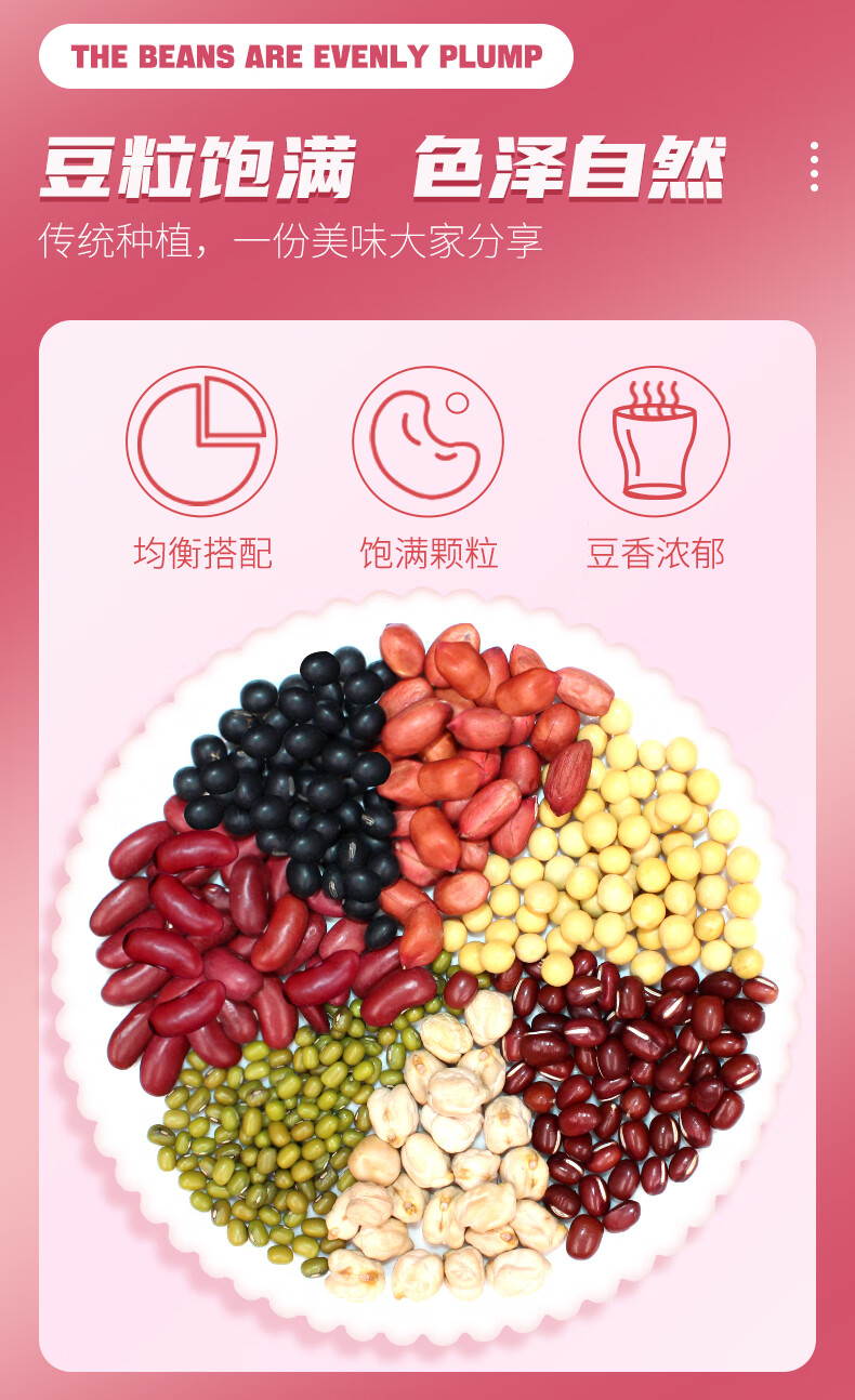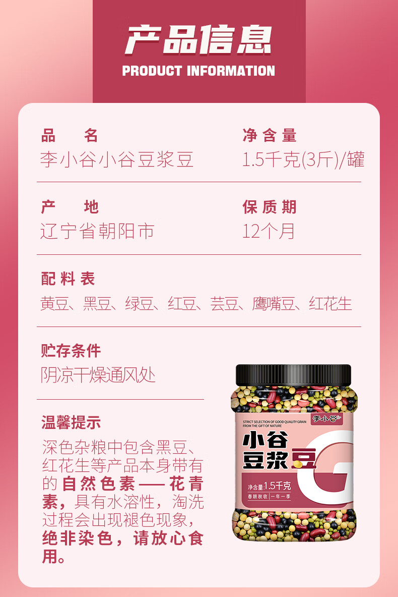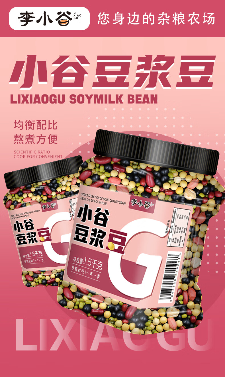 商品名称:李小谷 豆浆豆3斤罐装 含黄豆 黑豆 绿豆 红豆 芸豆 鹰嘴豆 花生 打豆浆