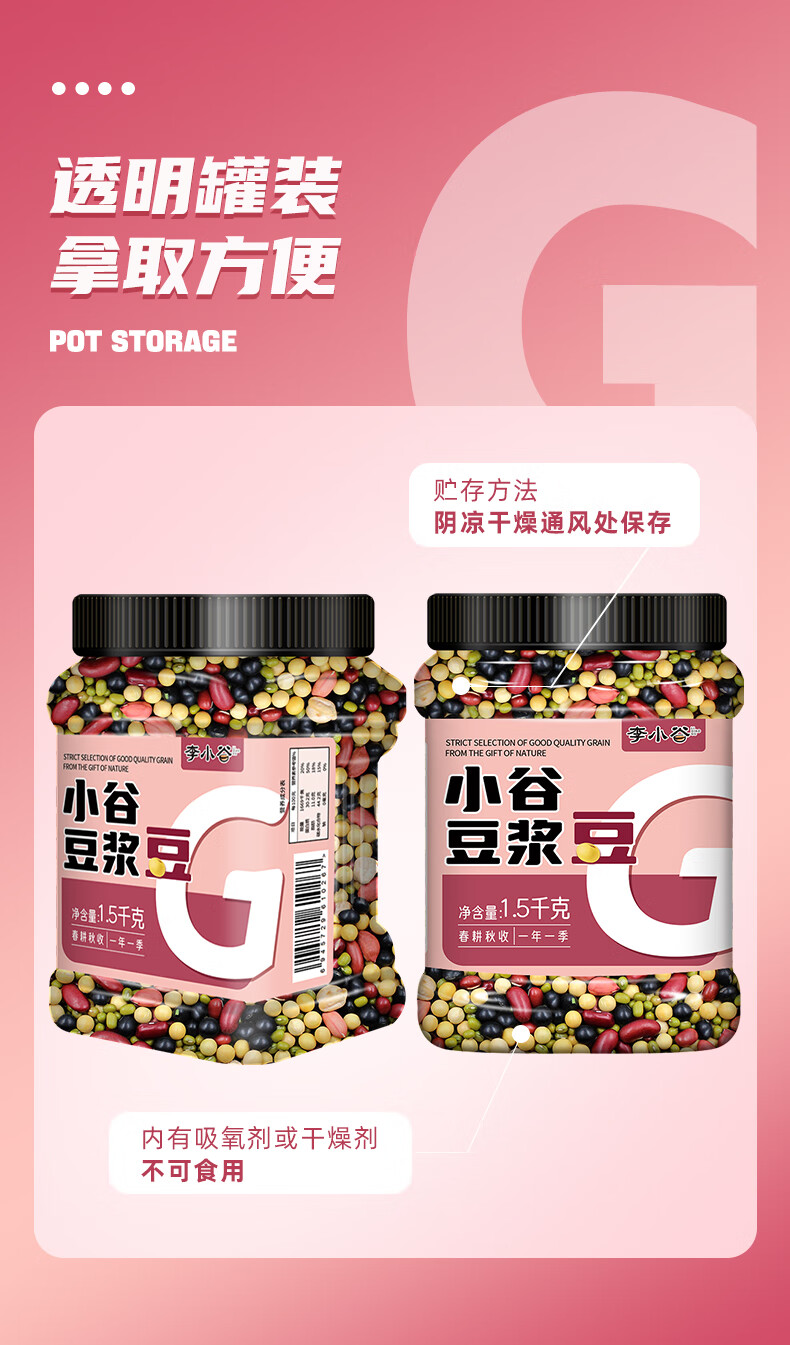 • 包装清单:李小谷豆浆豆1.5kg*1罐